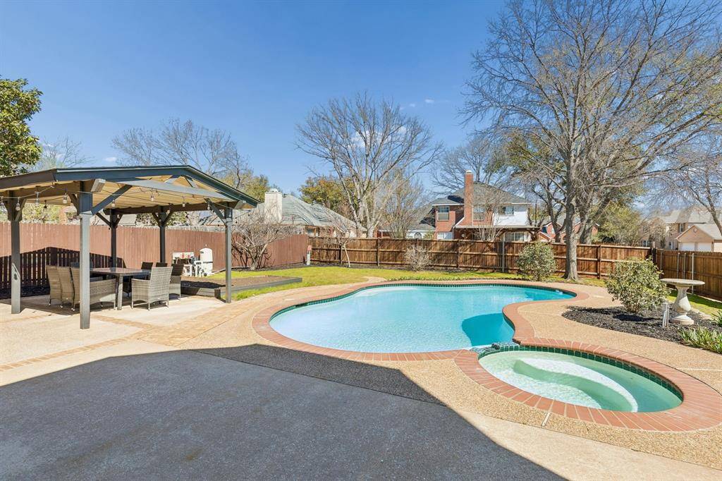 Fully renovated 5-bedroom, 4-bath home on a large corner lot in one of Flower Mound's top school districts. Features include an updated kitchen with Cortez countertops, a large island, a breakfast nook, and new stainless steel appliances. All bathrooms have been updated. Enjoy a formal dining room, private office, and dedicated theater room. Backyard offers a pool, pergola, and shed perfect for entertaining. Move-in ready and a must-see!