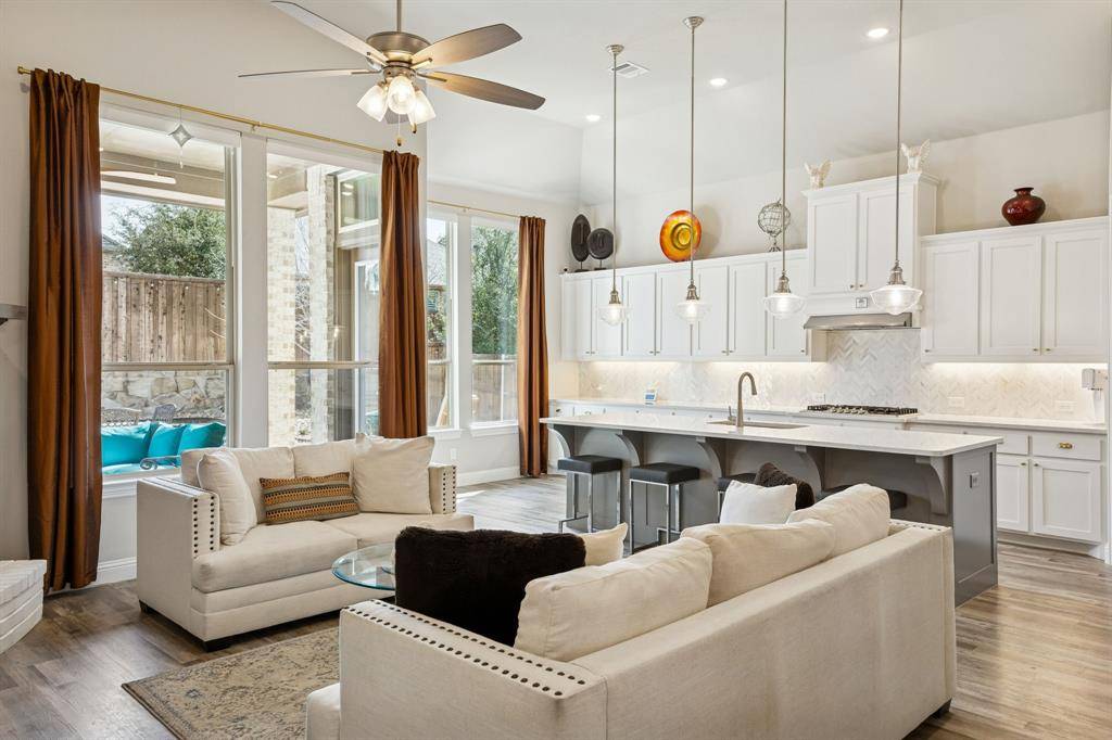 SMART BUY the highly sought-after Star Trail community of Prosper, TX— 1-Story AVAILABLE MOVE-IN READY, offering the perfect opportunity to enjoy luxury living without the wait of new construction. This beautifully maintained 3-bedroom, 2.5-bath home features soaring ceilings, a PRIVATE OFFICE, formal dining, THEATER, and an open-concept kitchen overlooking the spacious family room—ideal for both everyday living and entertaining. The second bedroom features a custom built-in bed, maximizing functionality and flexibility to suit your lifestyle. Hardwood flooring is thoughtfully placed throughout high-traffic areas for both durability and elegance, while stamped luxury tile accents the laundry room leading into the finished garage. The garage itself offers exceptional organization and storage solutions. Enjoy outdoor living with a covered patio, built-in grill, manicured landscaping, generous side yards, and a tall privacy fence. Perfectly positioned within walking distance to the elementary school and neighborhood park, residents enjoy resort-style amenities including tennis, pickleball, pool, clubhouse, and scenic trails—all just minutes from popular dining and shopping. This is more than a home—it's an opportunity to embrace elevated living in one of Prosper's most desirable communities.
