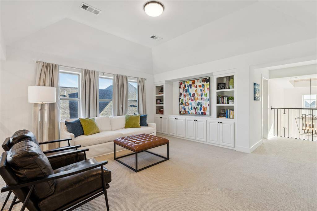 Upstairs, a spacious gameroom showcases custom built-ins and an entire wall of storage cabinetry, along with two additional bedrooms and baths that provide comfort and privacy. Designer finishes flow throughout the home, from flooring and fixtures to architectural details that elevate everyday living.