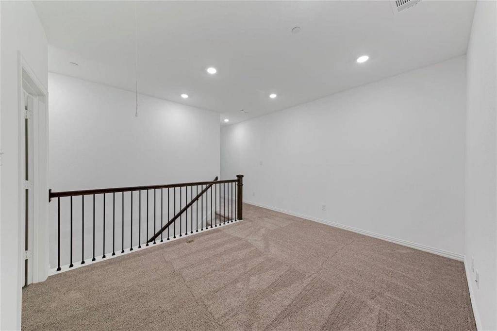 Fantastic gated community Legends Crossing corner lot town home. 3 bedrooms, 2.5 bathrooms, 2 car garage. Upgrades include Energy Star Whirlpool stainless steel appliances, ceramic tile backsplash, solid surface countertops, 42 in kitchen cabinetry, Moen faucets, dual pane energy efficient windows, 10' ceilings, 8' doors on the main floor, LED disc lighting, walk-in closets, brick exterior, upgraded flooring, smart home system wiring, Ring doorbell, energy efficient hvac, undermount kitchen sink, microwave, kitchen island with solid quartz surface countertops, open stair . Primary with ceramic tile shower glass surround, dual sinks, ceramic tile flooring, lighting package, Moen faucets, walk in closet. Landscaping package, sprinkler system, gutters, garage opener, tile flooring baths. Refrigerator,Washer and dryer included.