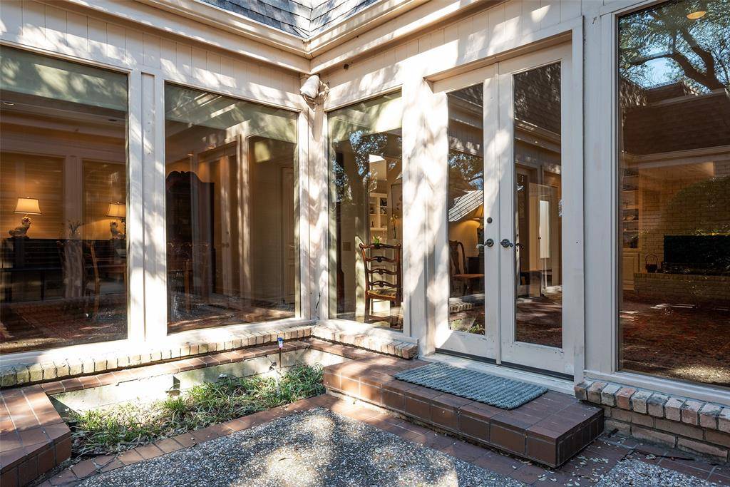 Perfectly positioned in sought-after Tealwood Square, this charming 3-bedroom, 3-bath townhome is tucked away on a quiet cul-de-sac in Devonshire. Designed around a spacious private courtyard shaded by mature live oaks, the home is filled with natural light and offers exceptional privacy. This one-story home features an open floor plan with generously sized rooms, two fireplaces, and a layout that easily accommodates both contemporary and traditional styles. Bedrooms are thoughtfully separated for privacy, and one bedroom offers ideal flexibility as a home office or studio.