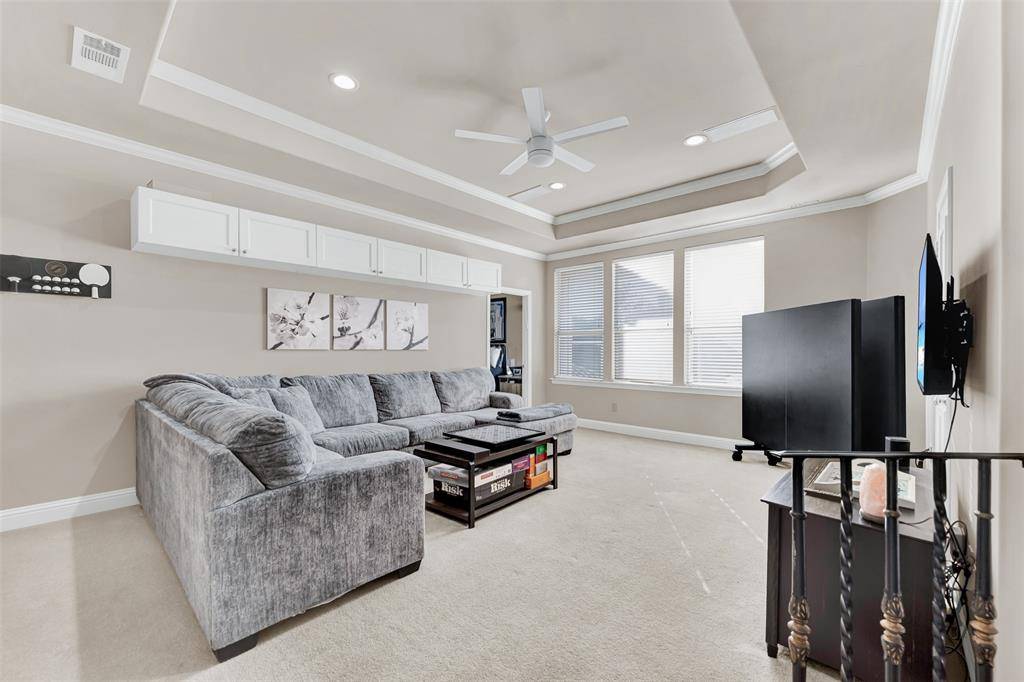 Fabulous Mediterranean-style home on quiet cul-de-sac exudes elegance in every room! Nestled within one of Plano's most prestigious communities, this meticulously maintained home offers a seamless blend of timeless sophistication and contemporary luxury. The home's prime location puts you minutes from the upscale dining of Legacy West, top-tier Plano ISD and private schools, and world-class medical facilities. The foyer introduces you to all the luxurious details from hardwood floors, surround sound, sunny windows, and an elegant staircase with wrought iron balusters as a stylish focal point. Just beyond the foyer is the family room, the premier gathering point of the home! Huge sunny windows highlight the patio and pool, along with a gas log fireplace, abundant built-in storage and convenient wet bar, it's perfect for entertaining too. It flows to the breakfast room with access to a grassy side yard and a gourmet kitchen of your dreams! Everything you want is here: gas cooktop, double ovens, built-in fridge and walk-in pantry. The primary suite is down for privacy, with a spa-inspired bath: double vanities, jetted tub, linen storage and walk-in closet! Upstairs is a spacious game room and four additional bedrooms. The resort-style backyard and pool have been recently updated with artificial turf, coping, plaster and lights replaced in the pool, Jandy iAqualink Automation System, fence and more! In-ground sprinkler system updated in 2021, and fresh landscaping in 2025.