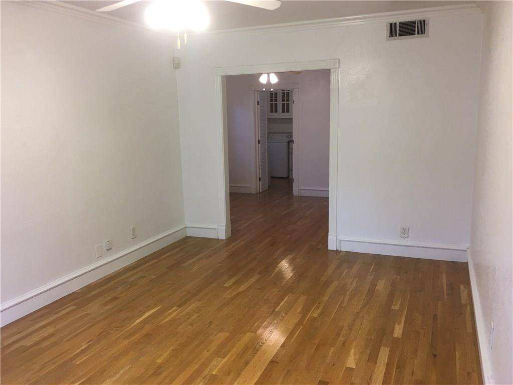 Cute and well done traditional duplex with rear parking and gated entry to rear. Hardwoods, porch, Corian counter tops, and washer and dryer. Lots of charm. Downstairs unit. Gated and covered parking for one vehicle. Also a separate storage unit behind the gate.