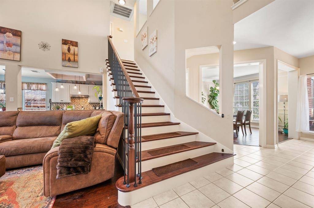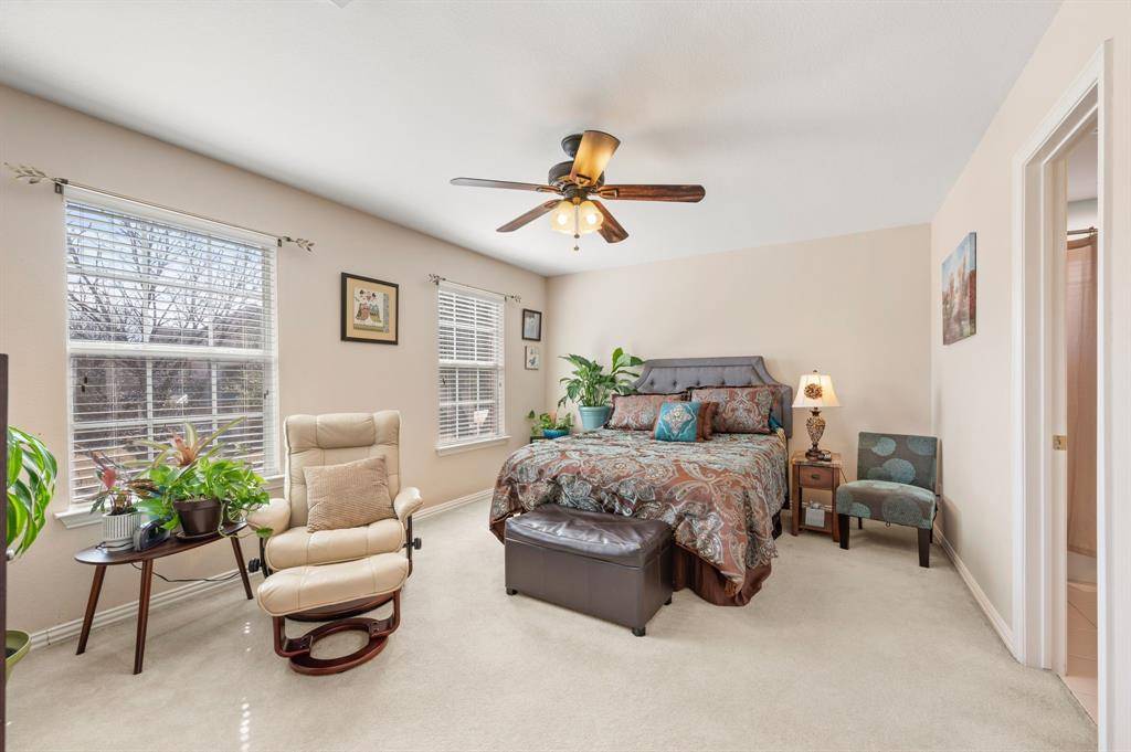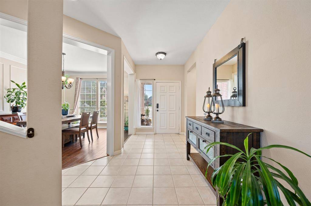 Distinguished Colonial-style Drees custom residence located within the prestigious gated community of Meadow Ridge in Trophy Club, recently recognized as the safest city in Texas. This stately home showcases recent upgrades including a new roof, new gutters, fresh exterior paint, new garage doors, and a new dishwasher. Inside, soaring ceilings and expansive windows fill the home with natural light, enhancing the elegant yet comfortable living spaces. The open-concept island kitchen flows seamlessly into the main living area and features quartz countertops, breakfast bar seating, and a walk-in pantry. The main-level primary suite offers a private retreat with a bay window sitting area and a luxurious bath complete with jetted tub, separate shower, and dual walk-in closets. Upstairs, a spacious secondary living area with built-in tech center provides flexible use as a game or media space, accompanied by three additional bedrooms and two full baths. Bedroom 4 offers the feel of a secondary primary suite, ideal for guests or a private teen retreat. Bedroom 5 is located on the main level and currently serves as a study with built-in desk. The oversized three-car garage and extended driveway provide ample parking. Outdoors, enjoy a serene, park-like backyard featuring a patio and gazebo — perfect for relaxation or entertaining. Ideally situated within walking distance to the elementary, middle, and high school, scenic trails, ponds, parks, baseball fields, and the community pool, with convenient access by foot or golf cart to nearby shopping, banking, and fitness options. Easy access to Highways 114, 170, and DFW Airport completes this exceptional offering.