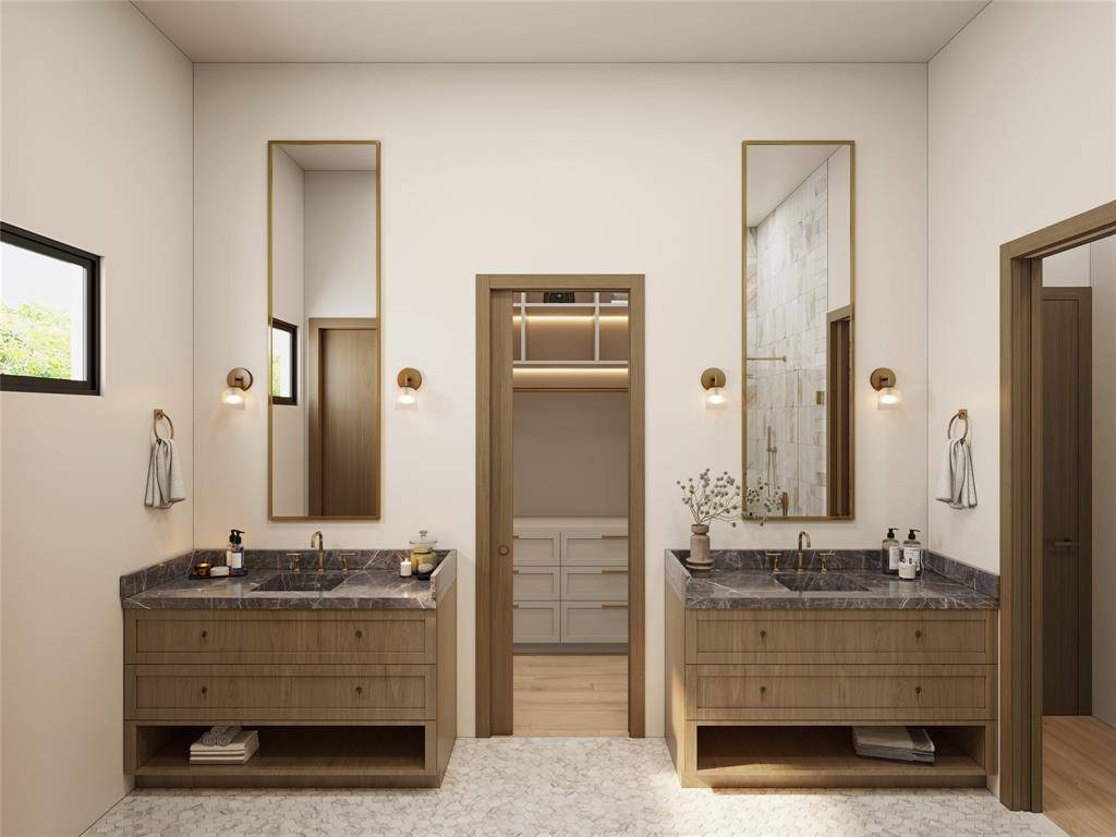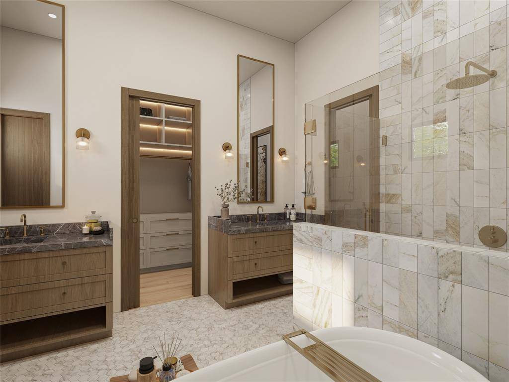 Open-concept living and large dining area are anchored by a designer fireplace and framed by large windows that flood the space with natural light. The chef's kitchen is a true showpiece—featuring custom cabinetry, a stunning island, premium appliances, designer lighting, and an oversized walk-in pantry, prep kitchen for effortless entertaining. The luxurious primary suite offers a serene retreat with views of the backyard, a spa-inspired bathroom with dual vanities, soaking tub, oversized glass shower, and a beautifully designed walk-in closet with custom built-ins. Additional highlights include oversized secondary bedrooms with ample storage, a spacious game, media room perfect for entertaining, and a private home office with custom built-ins Step outside to your private backyard oasis featuring a covered patio with an outdoor kitchen ideal for dining and lounging, overlooking a sparkling pool and beautifully landscaped yard—perfect for relaxing or hosting gatherings year-round. Blending elegant design with modern functionality, this extraordinary home offers luxury living in every detail.
