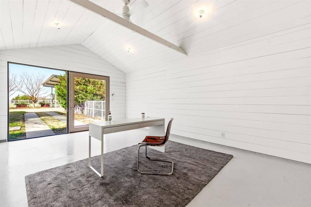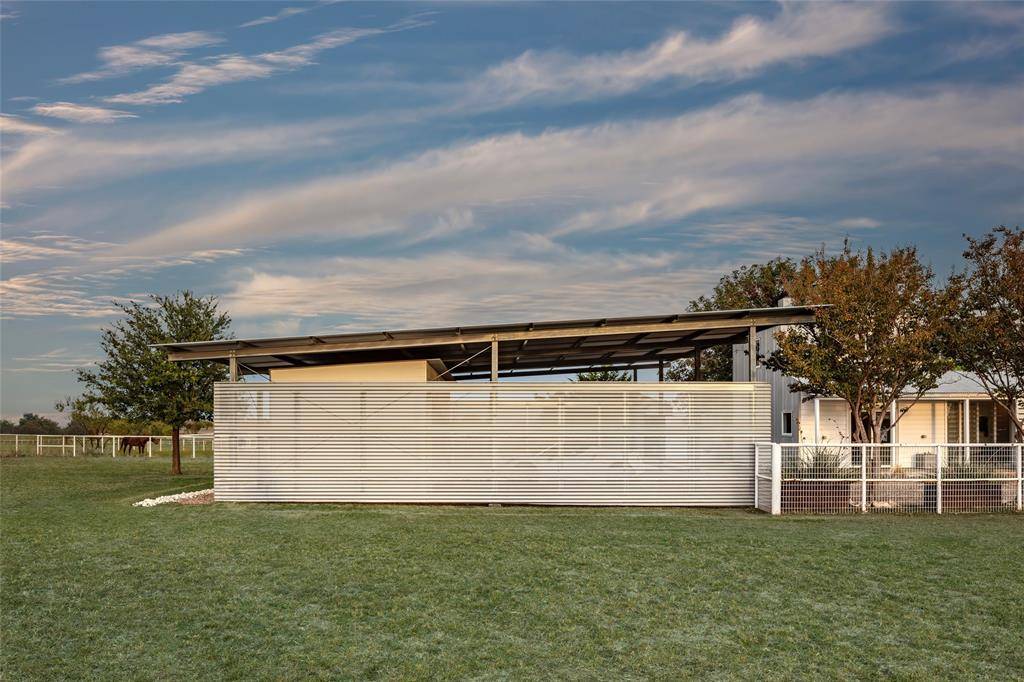 Welcome to 2436 Big Sky Trail - an architectural retreat set beneath wide North Texas skies. Designed by award winning architect Max Levy, this Prairie style home rests on an ag exempt, fully fenced 4.65 ac property and has been featured on HGTV and in multiple design publications. Built in 1999 and spanning 2,113 SF, the 3BD, 3BA residence was thoughtfully composed to complement the surrounding landscape. Pella Architect Series windows and doors frame long views of pasture and sky, creating a seamless connection to the outdoors. The lower level is designed for gathering, bringing the dining, living, and kitchen areas together in an open layout. Stained concrete floors run throughout the main level. The kitchen features crisp white cabinetry with generous storage, a Viking cooktop, and stainless steel appliances. The fireplace anchors the living area and creates a natural gathering point. Upstairs, bedrooms are arranged as individual suites, offering privacy while maintaining the home's architectural character. The screened in porch with its own fireplace extends the living space outdoors and provides a relaxed setting to enjoy the land year round. Beyond the main residence, the property offers additional flexibility. A 312 SF ADU provides space for guests, a studio, or private office with shiplap walls, full cell insulation, mini split HVAC, and custom door and window detailing. The four stall barn includes a tack room, wash bay, electrical, and lighting. Animal shelters, dog run, garden space, and fire pit enhance the usability of the land. Ponder offers expansive country living just northwest of Denton while remaining within convenient reach of Dallas and DFW Airport. The adjoining 5.26 ac lot is also available for purchase, offering the opportunity to expand to a combined 9.91 ac, build an additional residence, or preserve greater privacy.
