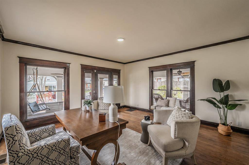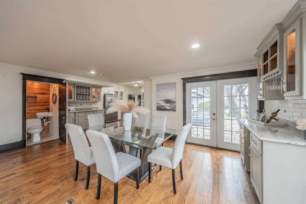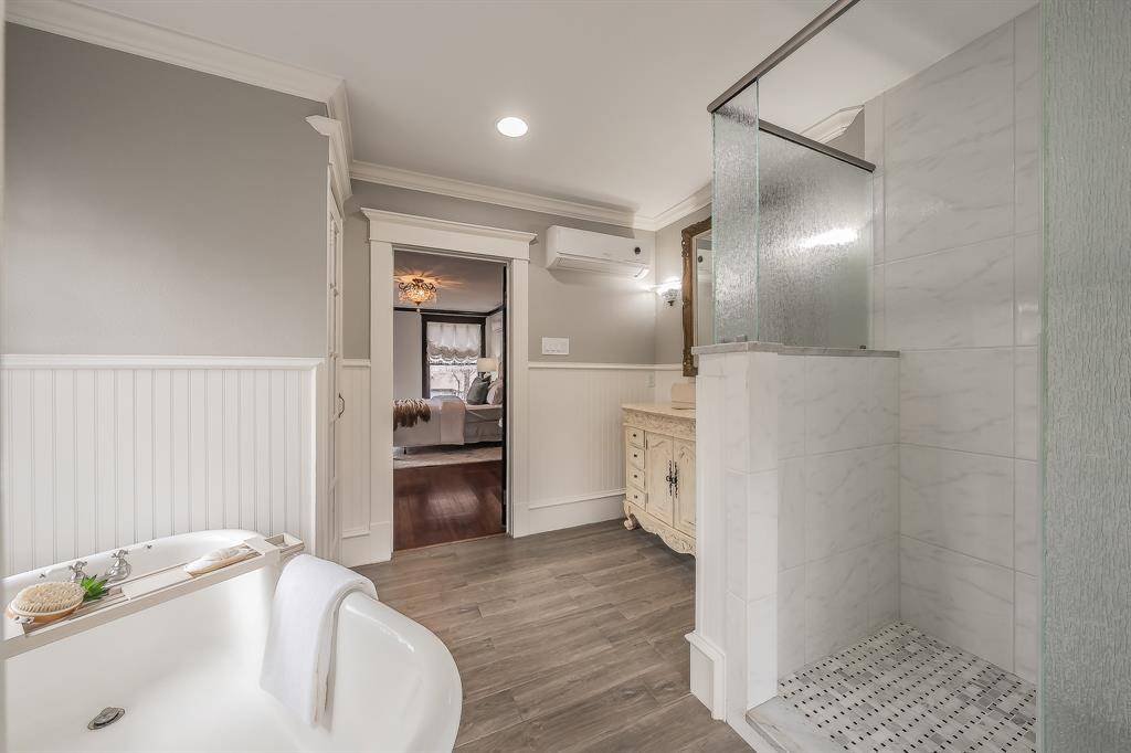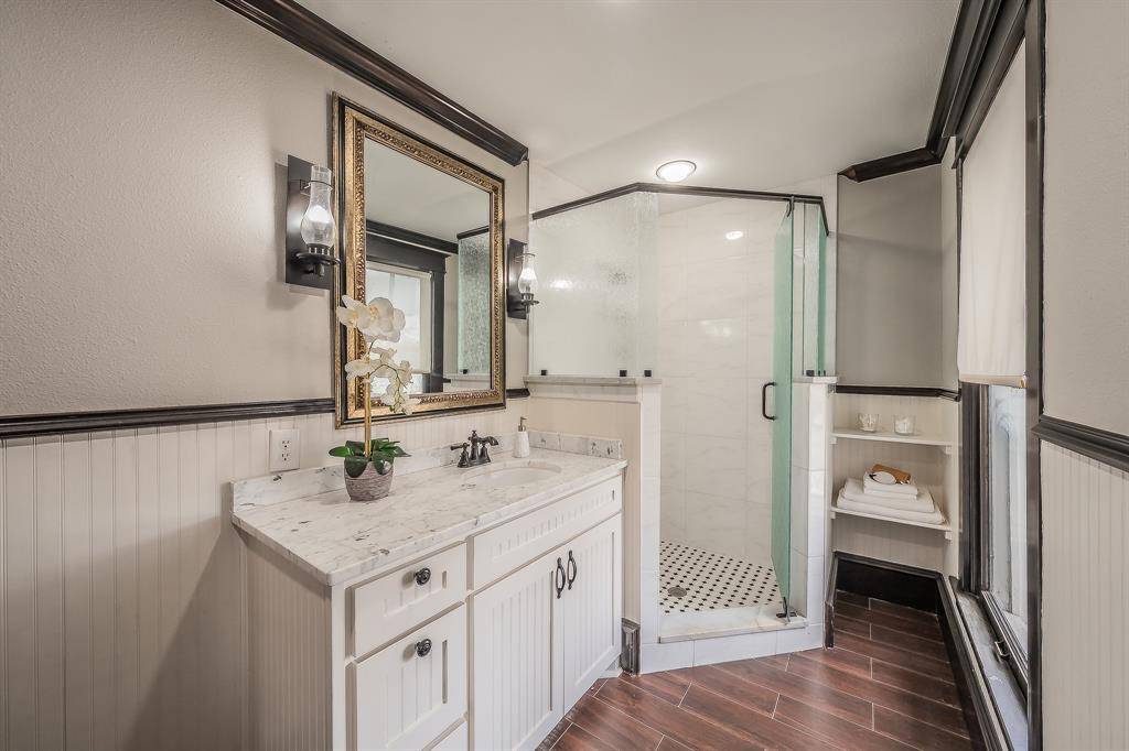 Known as “The Red Gate Inn,” this 4-bed, 4 full & 1 half bath property offers a rare investment opportunity in the heart of Downtown McKinney! This Airbnb-ready property is ideal for investors seeking to expand their portfolio and has previously operated as a successful Bed & Breakfast. It also presents incredible potential as a boutique wedding venue, event space, or private residence. Situated on a .41-acre corner lot within walking distance to McKinney Square, this historic home blends timeless charm with modern updates. The iconic red gate entry welcomes you to a flagstone patio and wrap-around porch complete with swing and multiple seating areas—creating an inviting first impression. Inside, remodeled spaces are filled with natural light and showcase hardwood floors throughout. The main house features 3 bedrooms, each with its own ensuite bath. The primary suite offers a beautifully remodeled bath with walk-in shower, vintage soaking tub, custom vanity and elegant sconce lighting. The expansive kitchen is designed for hosting, featuring stainless steel appliances including a Viking gas range, double ovens, vented hood, large island, granite countertops and built-in buffet. The kitchen flows seamlessly into the dining area and oversized living room with gas fireplace. Upstairs, two additional suites—“The Yellow Rose” and “The Blue Bonnet”—offer sitting areas and remodeled baths. The fourth bedroom suite is located above the detached two-car garage, complete with fireplace and full bath, perfect for extended stays or rental flexibility. Outdoors, the manicured grounds provide multiple gathering spaces, oversized yard, gazebo, and pool & spa, accommodating events of up to 50 guests. Whether you envision continuing its legacy as a Bed & Breakfast, operating a thriving Airbnb, hosting unforgettable events, or enjoying it as a private estate, “The Red Gate Inn” offers unmatched versatility in one of McKinney's most desirable locations.