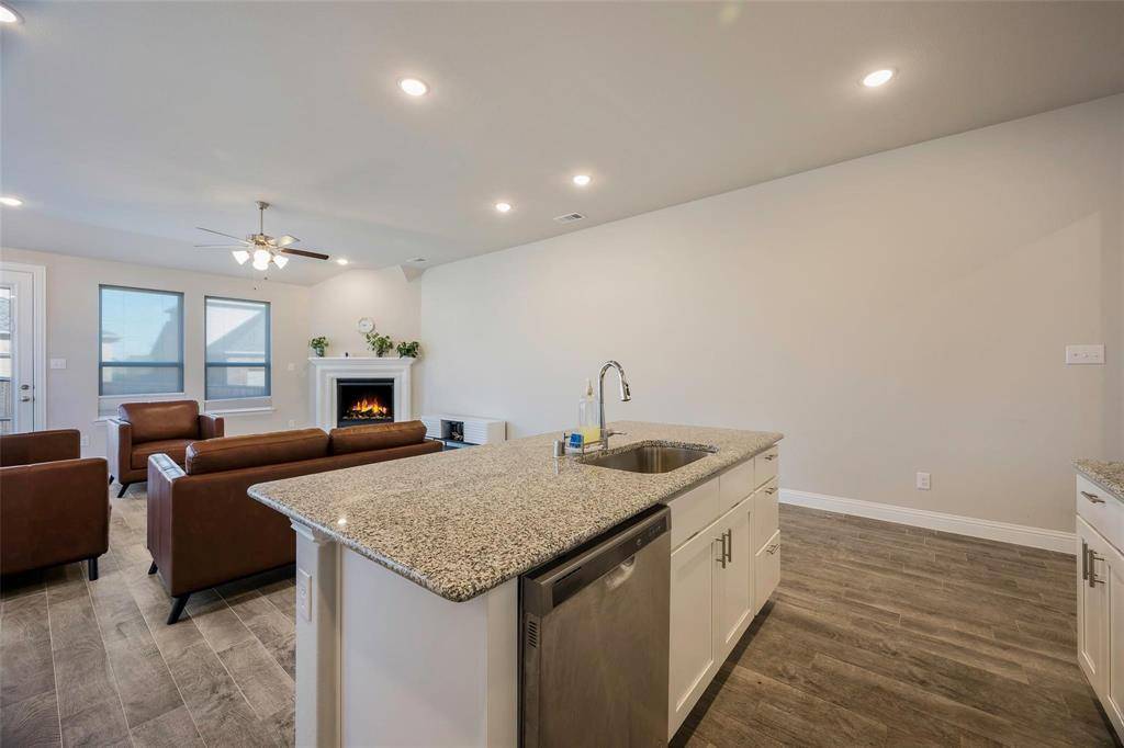 Step inside to an airy open-concept layout where natural light fills every corner. The living room anchors the space with a stylish electric fireplace, flowing seamlessly into a chef-inspired kitchen featuring granite countertops, a generous island perfect for entertaining, and a walk-in pantry that keeps everything organized. The private primary suite is a true retreat, complete with dual sinks and elegant stone countertops. An oversized laundry room and thoughtfully upgraded finishes round out this move-in ready gem.