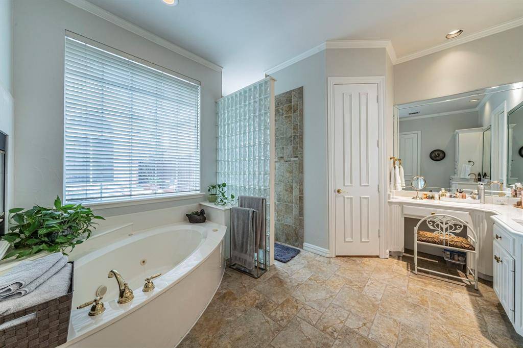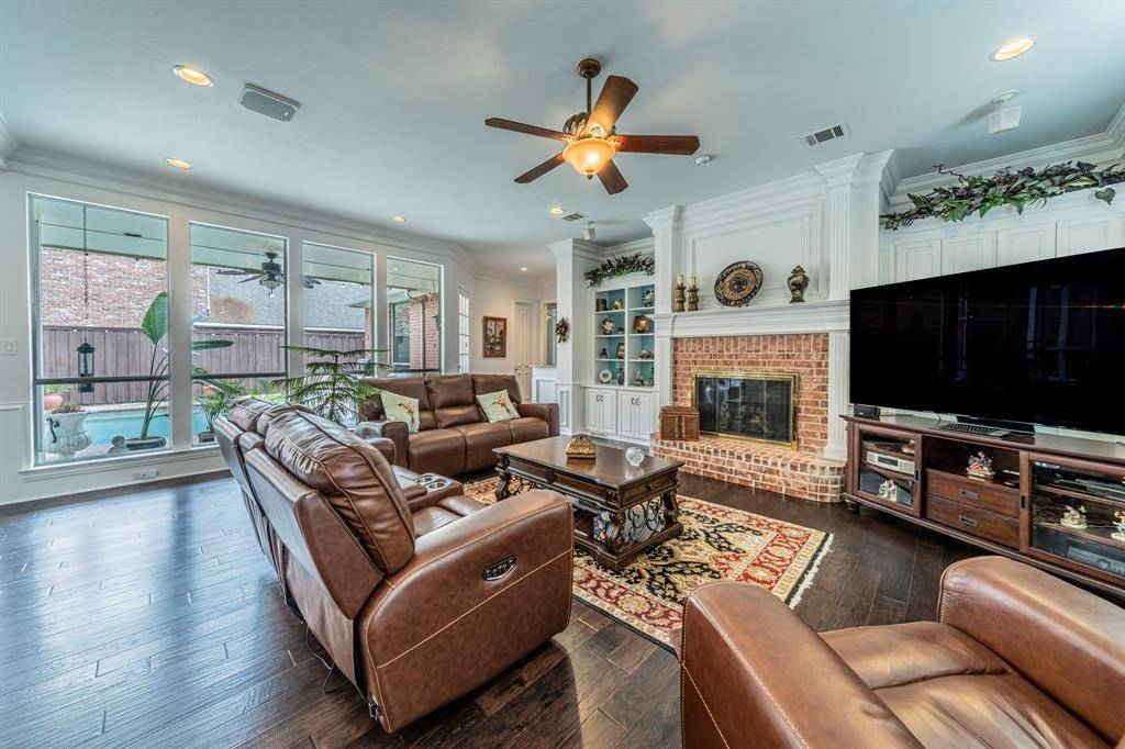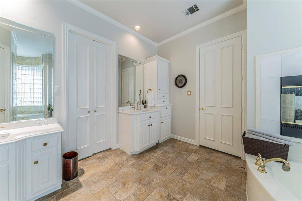 Beautifully updated North Dallas home in the desirable Oaktree community, offering 5 bedrooms, 4.5 baths, and approximately 4,746 sq ft of elegant living space. Spacious open floor plan features a chef's kitchen with stainless steel appliances, double ovens, walk-in pantry, wet bar, and abundant cabinetry—perfect for entertaining. Private wood-paneled study adds warmth and character. The luxurious primary suite includes a spa-inspired bath with soaking tub and body sprays. Step outside to your backyard oasis with pool, spa, and wading pool. Additional highlights include three fireplaces, plantation shutters, a 3-car garage, and numerous updates including HVAC and foundation work. Conveniently located near major tollways, shopping, and Plano ISD schools.