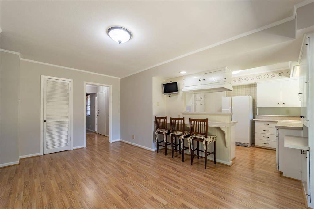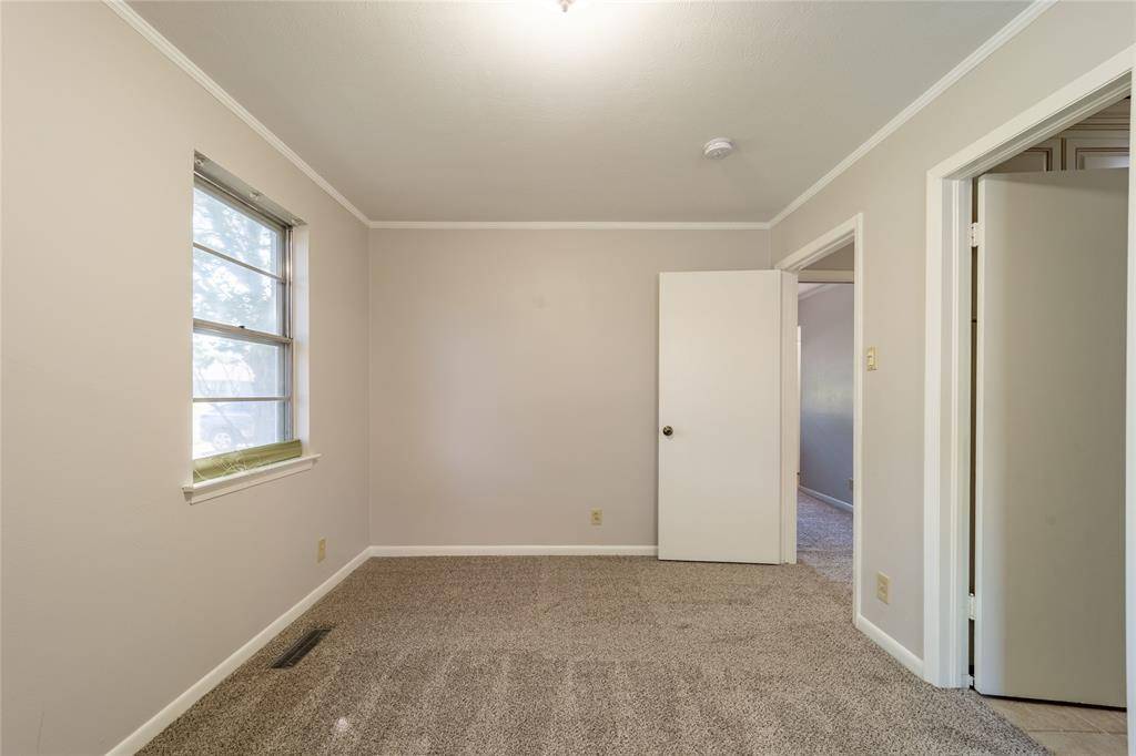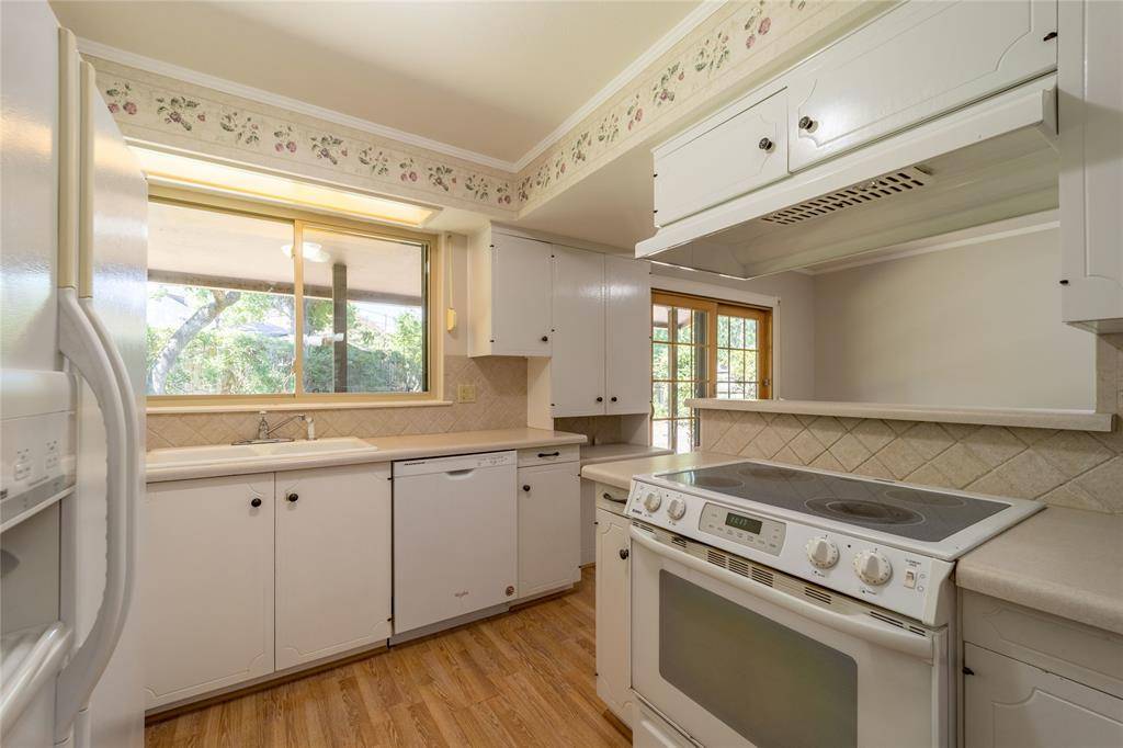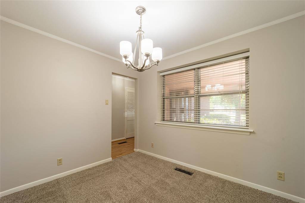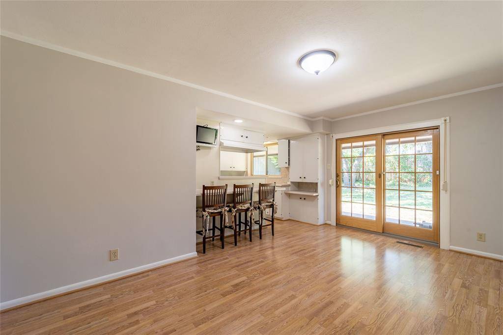 Fabulous Irving Arts District home features 3 bedrooms, lovely retro charm & just enough updates to add a modern touch and is sitting on a big lot with mature trees, landscaped yard, deep driveway, 2 car garage, & large back yard with big covered patio! The main living area features a cozy fireplace - the perfect place to curl up on those long cool evenings that are only a few months away. The den is open to the kitchen & has beautiful wood sliding doors leading to the patio & big back yard. Convenient kitchen has lots of light coming in from the large window above the kitchen sink; under cabinet storage with sliding doors add to charm & functionality of this space. Elegant formal dining will also work as a home office. The primary suite features a private & beautifully updated bath & generous closet space. Nice sized secondary bedrooms. Full size utility closet in hall. This is a wonderful place to call home. Must see!