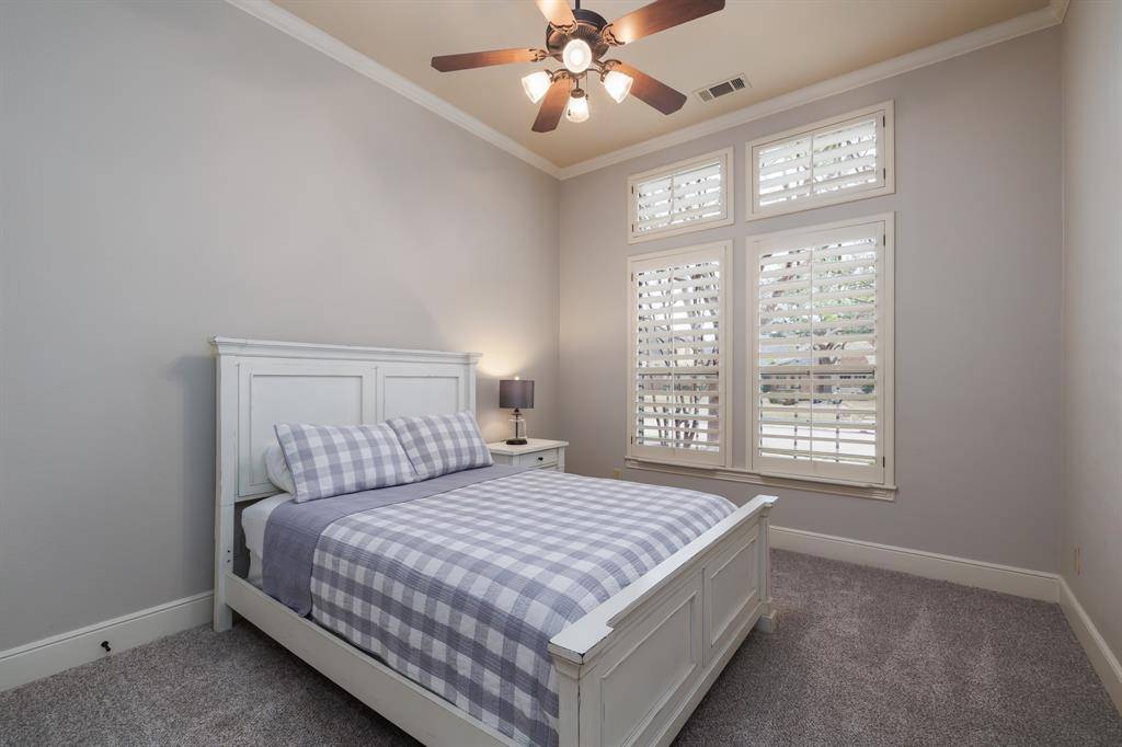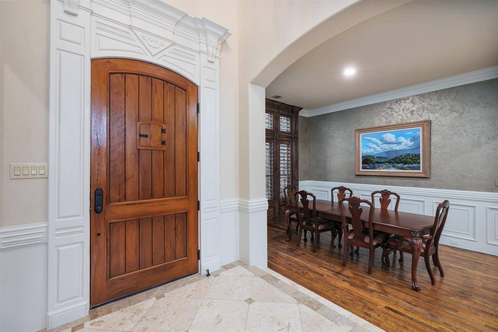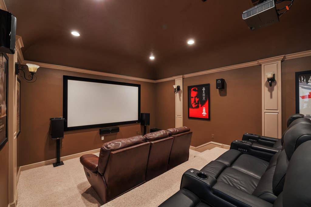 Discover the pinnacle of Colleyville luxury at 6716 Zermatt Court, nestled on a quiet cul-de-sac within the exclusive gated Clairemont Addition. This residence offers an unbeatable location, situated just minutes from upscale shopping, fine dining, vibrant entertainment, and DFW Airport, providing the perfect balance of private sanctuary and metropolitan convenience. The grand interior is defined by elegant hand-scraped hardwoods, custom built-ins, and an abundance of thoughtful storage. At the heart of the home, the chef's kitchen features premium granite countertops, a center island, gas cooktop, and a built-in refrigerator. This space flows effortlessly into two expansive living areas, each anchored by a cozy fireplace, creating an ideal environment for both intimate family gatherings and large-scale hosting. The primary retreat serves as a true sanctuary, boasting a private sitting area and a spa-like ensuite with dual vanities, a jetted tub, and two generous closets. A coveted first-level guest suite provides comfort for visitors, while the second floor features three additional bedrooms—each with a private ensuite bath—plus a massive game room with a full wet bar! Movie nights are elevated in the private media room, which comes fully equipped with all furniture and electronics included! Step outside to an entertainer's paradise featuring a sparkling pool, a sprawling backyard, and a covered living area with a stone fireplace. Complete with a 3-car garage, this home is a rare find in one of Colleyville's most sought-after communities. Option to apply for limited open enrollment into Grapevine-Colleyville ISD!