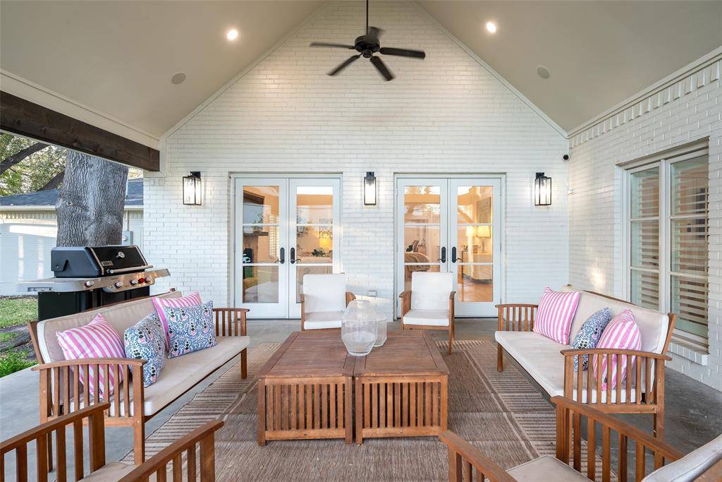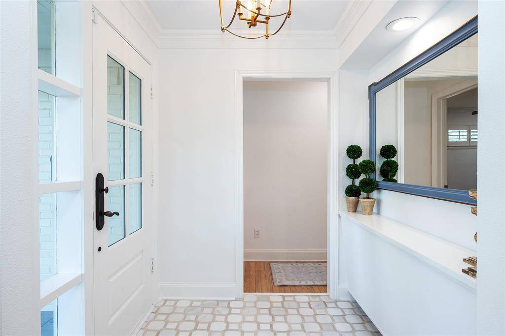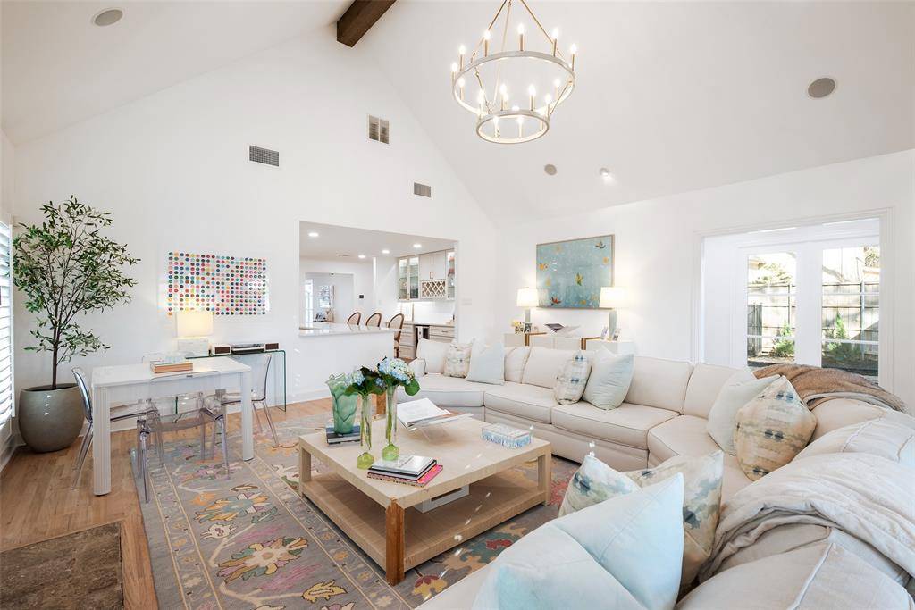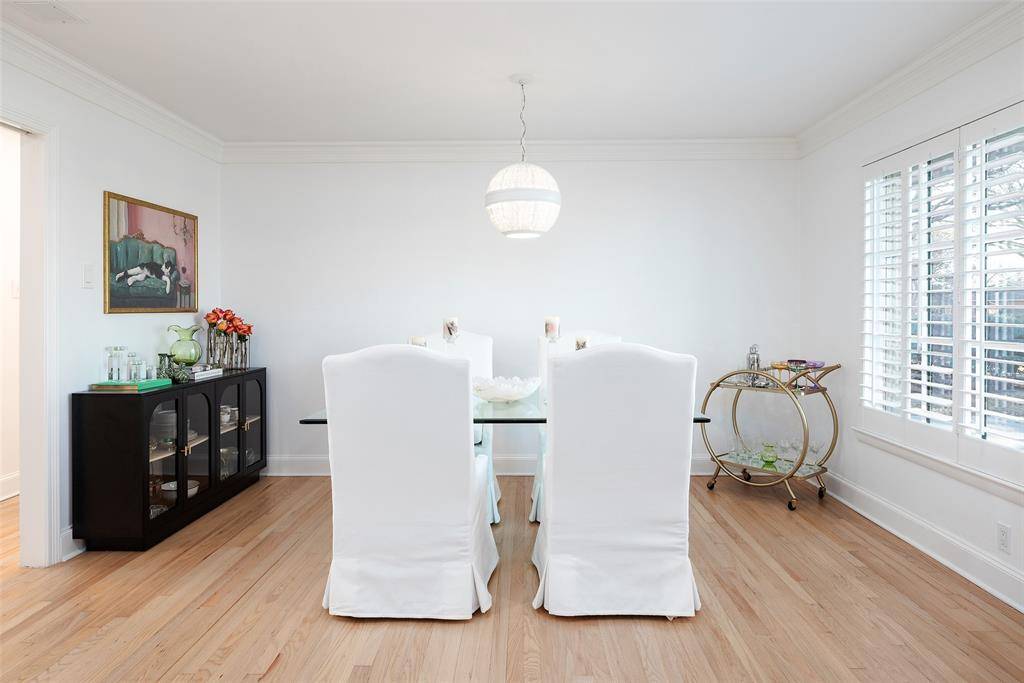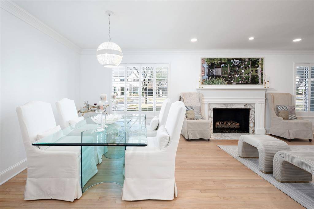 A welcoming fireplace shared between the living and dining rooms creates a warm and inviting space ideal for entertaining guests. The fully renovated kitchen features an expanded island, custom cabinetry with soft-close drawers, stainless steel appliances, and a walk-in pantry. A separate utility room with sink adds additional convenience. Just off the kitchen, a stylish dry bar complete with a wine cooler connects to the spacious family room. This impressive living area features a vaulted ceiling, a second fireplace, and large windows overlooking the expansive backyard and entertainment patio-perfect for gatherings both indoors and out. The large primary suite offers high ceilings and a beautifully updated spa-like bath designed for comfort and relaxation. An intimate exterior courtyard sits between the primary and second bedroom, providing a peaceful outdoor retreat while also offering an excellent opportunity to expand the interior square footage if desired. All three bathrooms have been fully renovated with quality finishes and thoughtful design. Significant recent improvements enhance the home's value and functionality, including updated HVAC, roof, and water heater. Located on a generous lot in one of Dallas' most desirable neighborhoods, this move-in ready Preston Hollow home combines modern updates, timeless style, and exceptional entertaining spaces both inside and out.