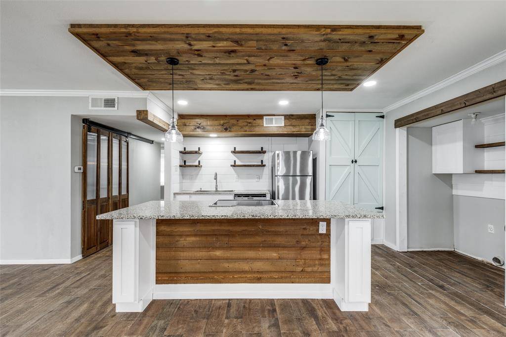 Welcome to 2954 Candlewick Ln in Farmers Branch, a beautifully updated home offering 4 bedrooms, 2 bathrooms, and 2,365 square feet of versatile living space designed for comfort and functionality. This spacious floor plan includes a dedicated office, formal dining room, and a large game room, providing plenty of room for work, entertaining, and everyday living. The updated kitchen is the heart of the home, featuring granite countertops, stainless steel appliances, a walk-in pantry, and abundant cabinet and prep space. The open layout flows seamlessly into the main living areas highlighted by upgraded flooring, stylish fixtures, and warm design touches throughout. Both bathrooms have been thoughtfully updated, and the generous bedroom sizes offer flexibility for family, guests, or additional workspace. Situated on a .21-acre lot, the backyard is perfect for relaxing or entertaining with a large covered patio and plenty of space to enjoy the outdoors. The location is hard to beat—just minutes from the Farmers Branch Recreation Center, with easy access to I-635 and I-35, and close to great shopping, dining, parks, and entertainment. Home is move in ready and available for quick possession, making it a fantastic opportunity for buyers looking for space, updates, and convenience in a prime Farmers Branch location.