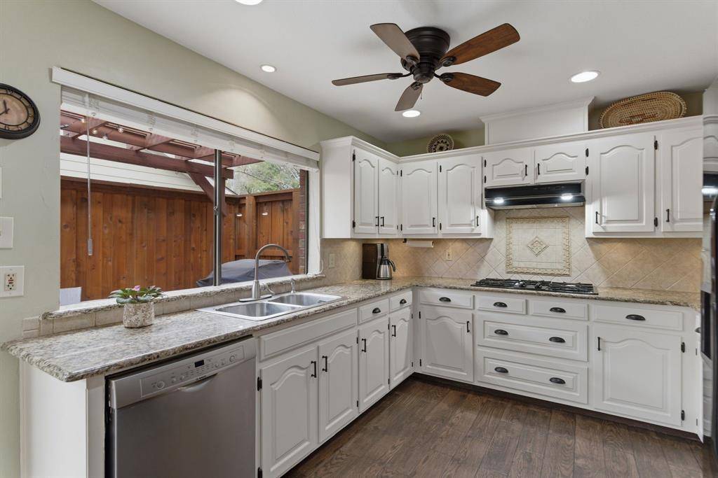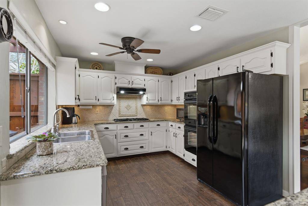 LARGE LOT with BEAUTIFUL CURB APPEAL. Well-MAINTAINED and UPDATED Home with MATURE TREES and MANICURED YARD. Enter to a HUGE LIVING ROOM and DINING area with GORGEOUS WOOD FLOORS, VAULTED CEILINGS, GAS FIREPLACE and VIEW of the BACKYARD & PATIO AREA through the PICTURESQUE WINDOWS and BACK DOOR. The LARGE KITCHEN has GRANITE COUNTER-TOPS with an ABUNDANCE of COUNTERSPACE, ISLAND, GAS COOKTOP, DOUBLE OVENS, UNDERMOUNT LIGHTING and STAINLESS STEEL SINK. Enjoy a VIEW from anywhere in the KITCHEN of the BEAUTIFUL ENCLOSED COURTYARD with PERGOLA, the PERFECT PLACE for GRILLING, READING or SIMPLY ENJOYING the SOUNDS of NATURE. There is a SPACIOUS PRIMARY SUITE with SITTING AREA, WOOD FLOORING and a LARGE CLOSET with BUILT-ins. The PRIMARY BATH has DOUBLE SINKS, RICH GRANITE COUNTERTOPs and an INVITING WALK-in SHOWER. Both GUEST BEDROOMS have WALK-in CLOSETS. The GUEST BATH is also UPDATED with BEAUTIFUL GRANITE. RELAX and ENTERTAIN in the HUGE BACKYARD with NO DIRECT SUN in the EVENINGS. THERE is a STORAGE BUILDING by the DRIVEWAY for EXTRA STORAGE and EQUIPMENT. HVAC is approximately 1 YEAR OLD. WELCOME HOME!