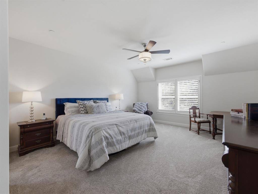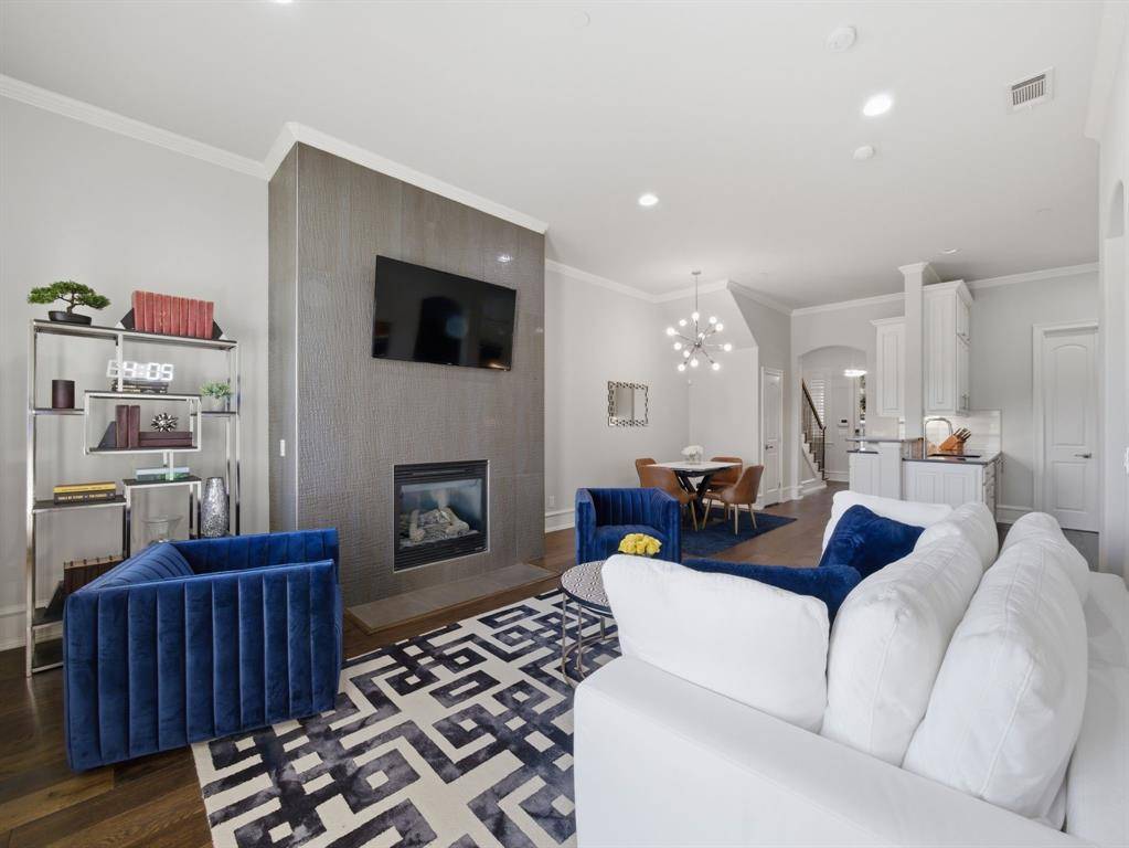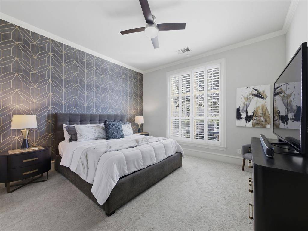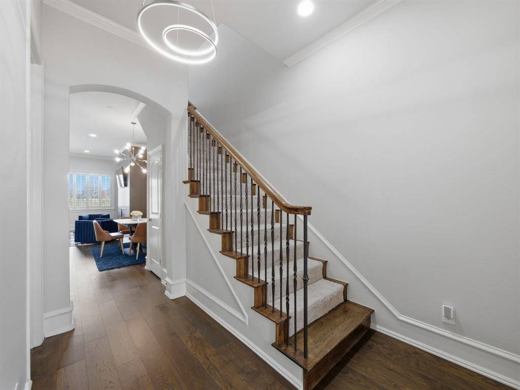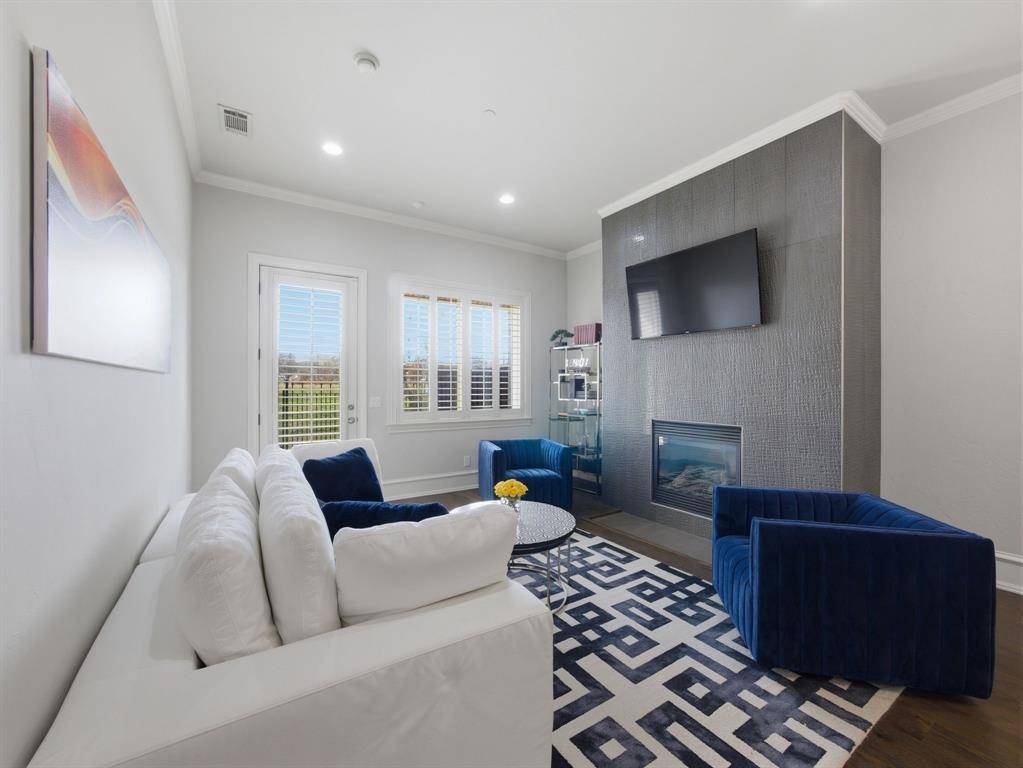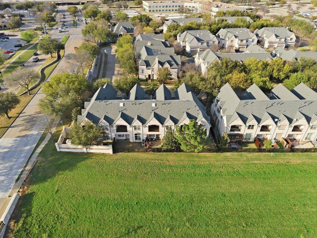 This beautifully updated Hawkins-Welwood Luxury Townhome is an extremely rare find, and perfectly located in the heart of DFW. It offers the convenience of a low-maintenance, lock-and-leave lifestyle. HOA provides lawncare, roof & exterior insurance coverage, access to the community pool, spa, fitness center, clubhouse, and BBQ pavilion. Smart home technology allows you to control home features easily with your mobile phone when you're traveling anywhere in the world, incl exterior security cameras in front and rear, front & garage doors, lighting, and thermostats. COMPLETELY UPDATED IN 2021, the first floor features clean and stunning quartz countertops, built-in Viking Professional wine fridge & bar area, modern light fixtures, and tile fireplace. Primary Bedroom Suite has an oversized glassless shower and dual lighted vanity mirrors, as well as a customized & oversized closet with built-in storage drawers, shoe racks, and high shelves & racks for seasonal clothing storage. Upstairs 2nd Bedroom is massive and can easily serve as a 2nd Primary Suite. The Study features beautiful oak hardwood flooring and makes a great home office. All bedrooms feature ensuite bathrooms for privacy. Garage has super clean epoxy flooring as well as a bonus storage closet and extra sq footage for all your tools and storage needs. AND THEN THERE'S THE BACKYARD…truly unique and unlike any you'll find in a townhome. After a long day, unwind and enjoy a glass of wine while overlooking the greenbelt of Denton Creek in your professionally landscaped yard featuring flagstone decking, waterfall, fire pit, & outdoor string lighting. And if you enjoy an active lifestyle, just open the back gate and you're steps from Andrew Brown Park consisting of over 23 miles of multi-use hike and bike trails. ADDITIONAL UPGRADES include TANKLESS WATER HEATER IN 2022 (instant and unlimited hot water!), ENERGY EFFICIENT INVERTER-DRIVEN DAIKIN HVAC SYSTEMS IN 2023 (both floors), and SAMSUNG DISHWASHER IN 2025.