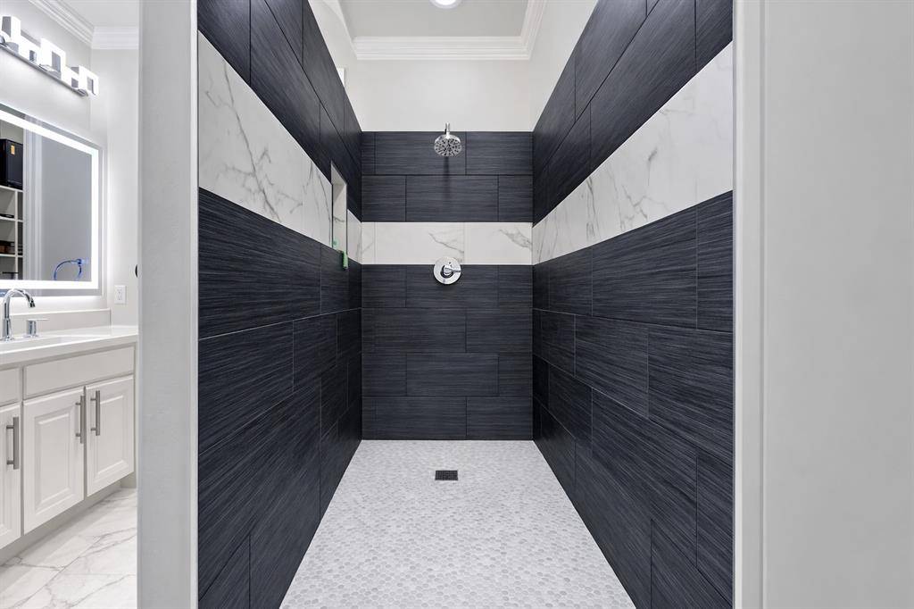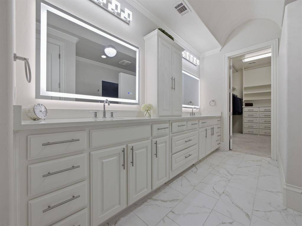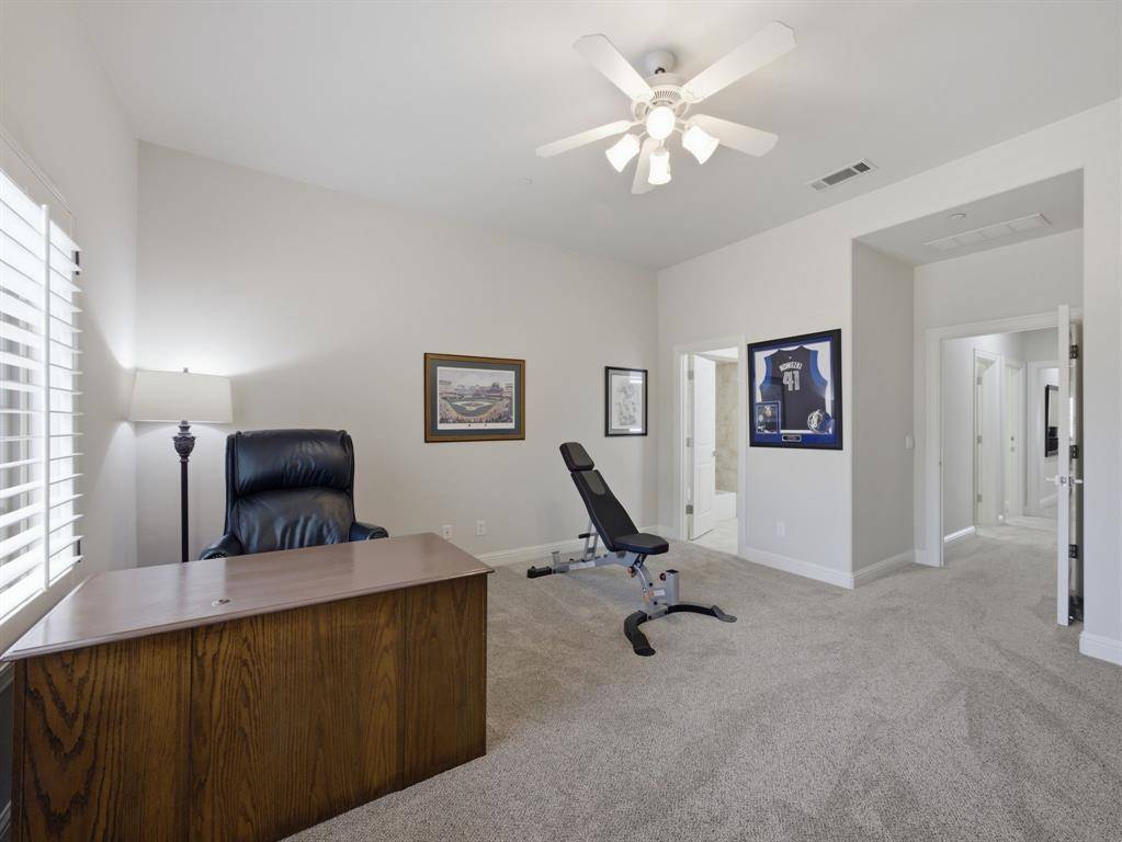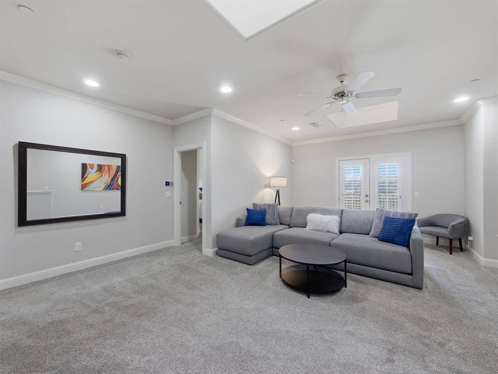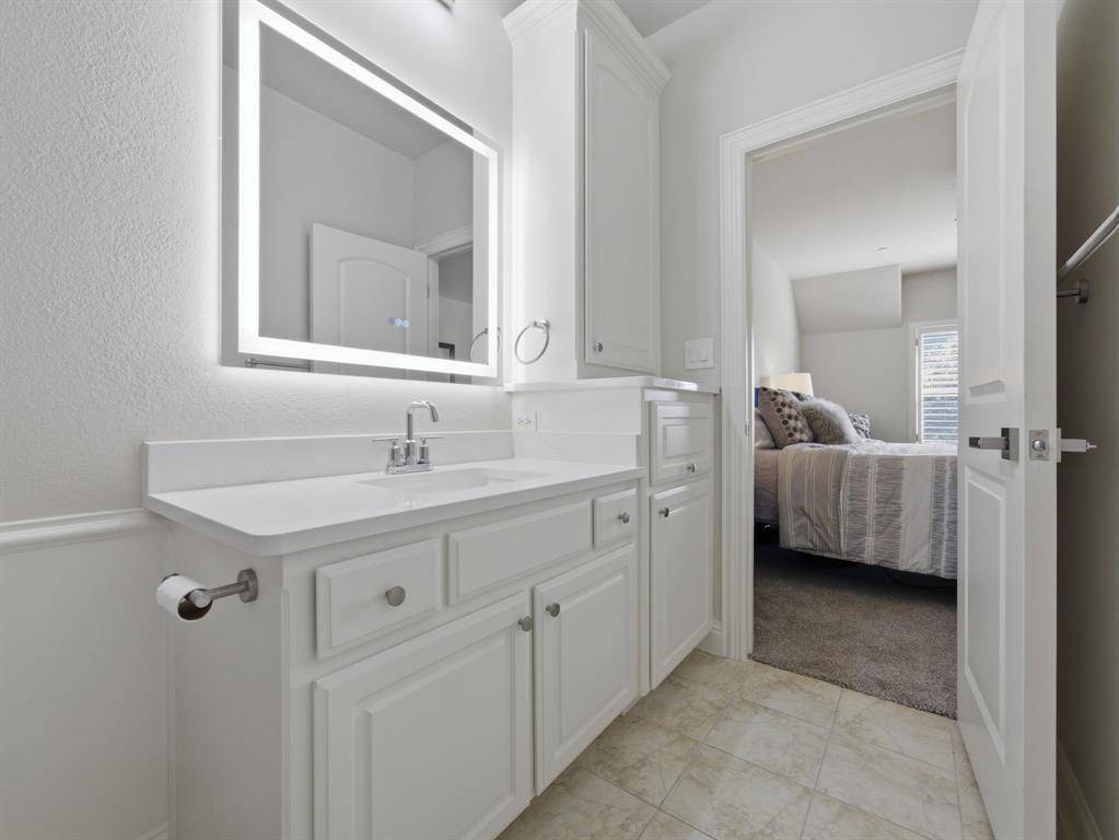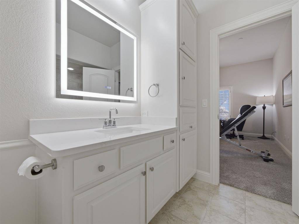 This beautifully updated Hawkins-Welwood Luxury Townhome is an extremely rare find, and perfectly located in the heart of DFW. It offers the convenience of a low-maintenance, lock-and-leave lifestyle. HOA provides lawncare, roof & exterior insurance coverage, access to the community pool, spa, fitness center, clubhouse, and BBQ pavilion. Smart home technology allows you to control home features easily with your mobile phone when you're traveling anywhere in the world, incl exterior security cameras in front and rear, front & garage doors, lighting, and thermostats. COMPLETELY UPDATED IN 2021, the first floor features clean and stunning quartz countertops, built-in Viking Professional wine fridge & bar area, modern light fixtures, and tile fireplace. Primary Bedroom Suite has an oversized glassless shower and dual lighted vanity mirrors, as well as a customized & oversized closet with built-in storage drawers, shoe racks, and high shelves & racks for seasonal clothing storage. Upstairs 2nd Bedroom is massive and can easily serve as a 2nd Primary Suite. The Study features beautiful oak hardwood flooring and makes a great home office. All bedrooms feature ensuite bathrooms for privacy. Garage has super clean epoxy flooring as well as a bonus storage closet and extra sq footage for all your tools and storage needs. AND THEN THERE'S THE BACKYARD…truly unique and unlike any you'll find in a townhome. After a long day, unwind and enjoy a glass of wine while overlooking the greenbelt of Denton Creek in your professionally landscaped yard featuring flagstone decking, waterfall, fire pit, & outdoor string lighting. And if you enjoy an active lifestyle, just open the back gate and you're steps from Andrew Brown Park consisting of over 23 miles of multi-use hike and bike trails. ADDITIONAL UPGRADES include TANKLESS WATER HEATER IN 2022 (instant and unlimited hot water!), ENERGY EFFICIENT INVERTER-DRIVEN DAIKIN HVAC SYSTEMS IN 2023 (both floors), and SAMSUNG DISHWASHER IN 2025.