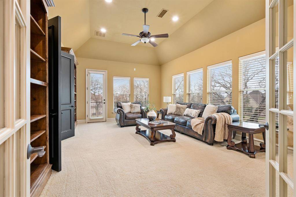Just beyond the main living areas, a distinguished private office offers a refined space to work or study. Wrapped in beautiful woodwork and filled with natural light, it feels timeless and substantial, perfectly suited for those who appreciate classic design. Upstairs, both a game room and a media room provide additional space for relaxing evenings, movie nights, and time spent together.