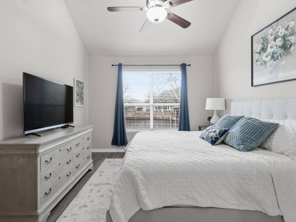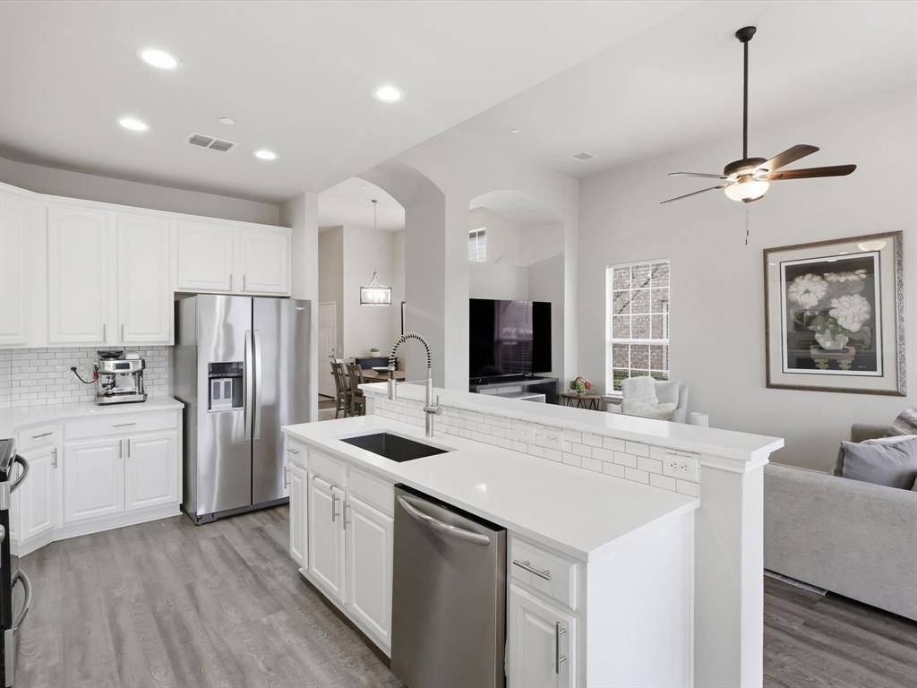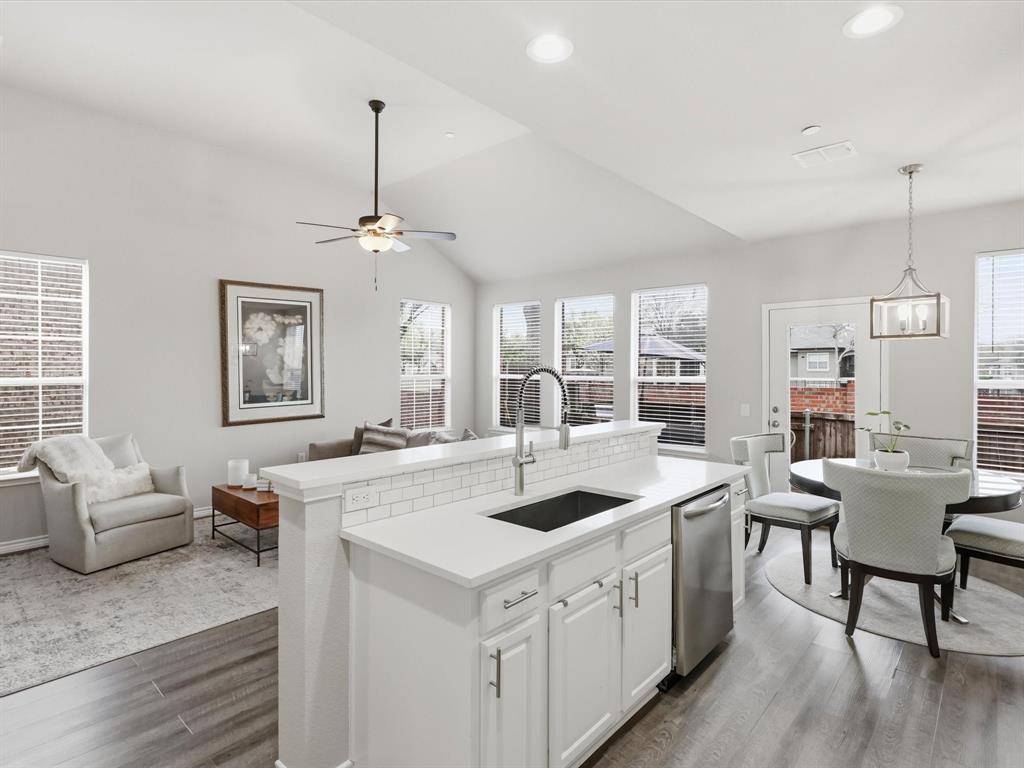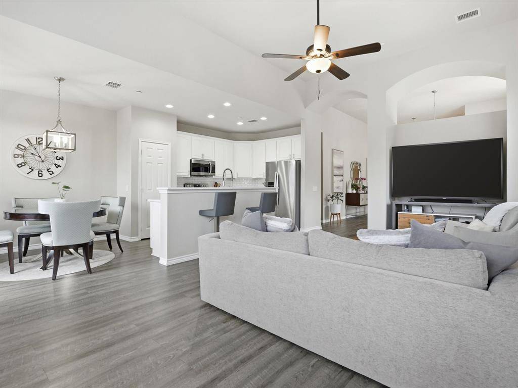 Welcome to this beautifully maintained 2-bedroom, 2-bathroom townhome in West Plano, offering comfort, style, and convenience. Luxury vinyl plank flooring flows throughout, creating a modern and cohesive feel. Just off the entry, an open office filled with natural light provides the perfect space for working from home or pursuing creative projects. A formal dining area sets the stage for intimate dinners and gatherings with friends. The layout flows effortlessly into the spacious living room, creating an inviting space for relaxing or entertaining. The living area opens seamlessly to the kitchen and breakfast nook, making everyday living easy and connected. The kitchen features quartz countertops, white cabinetry, and a custom backsplash, blending style and functionality. The breakfast nook offers a cozy place for morning coffee or casual meals. The primary bedroom is generously sized and designed as a comfortable retreat. The ensuite bathroom includes dual sinks, a separate shower, and a large walk-in closet. The secondary bedroom sits on the opposite side of the home, offering added privacy for guests or family. A full bathroom located nearby adds convenience and flexibility. Step outside to the private backyard patio, perfect for outdoor dining, relaxing evenings, or weekend gatherings. Located in highly desirable Pasquinellis Parker Estates, the home places you close to everything the area has to offer. Enjoy easy access to Arbor Hills Nature Preserve, premier shopping and dining, and the Dallas North Tollway, making both recreation and commuting effortless.