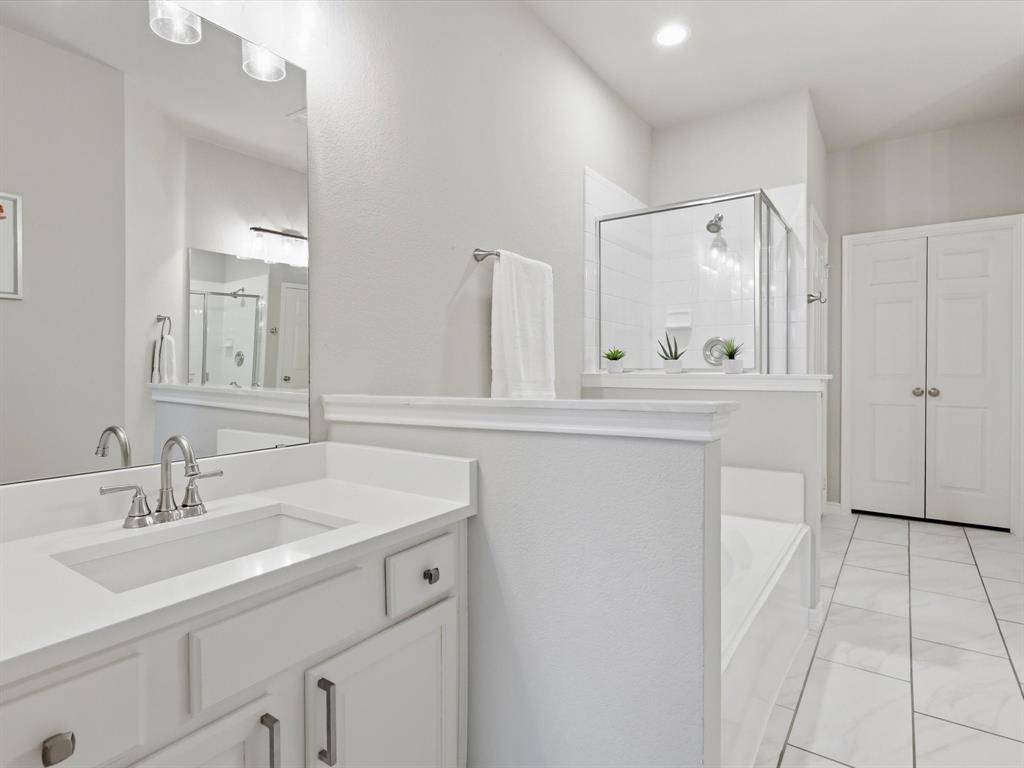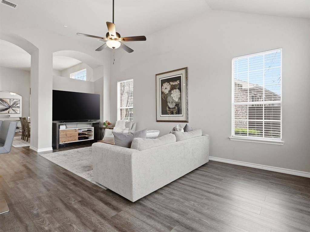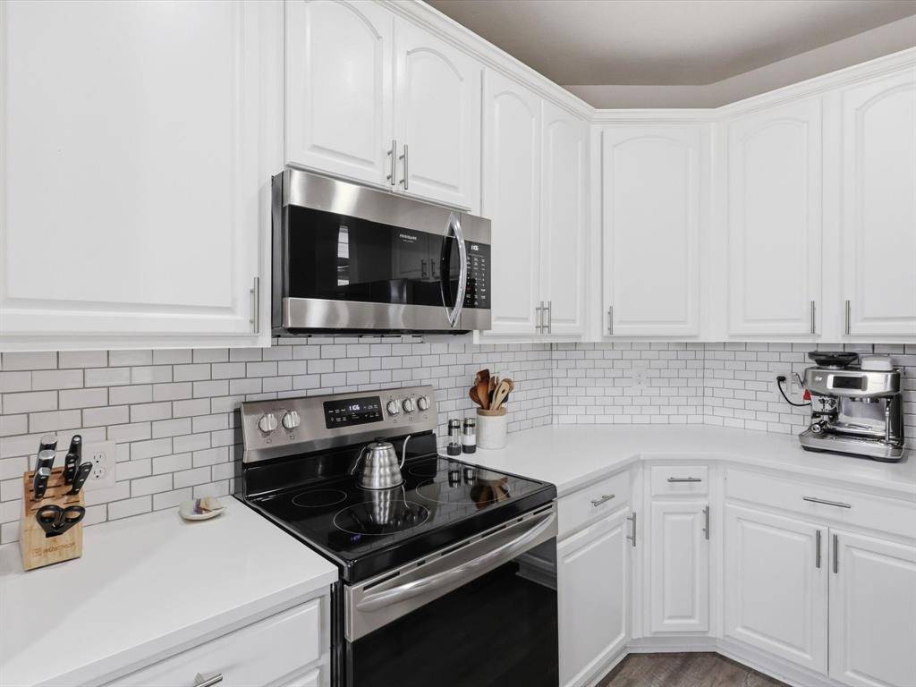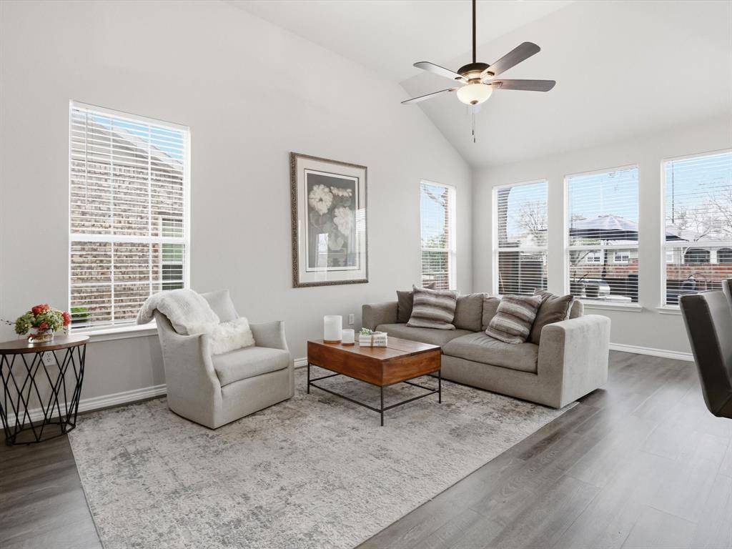 Welcome to this beautifully maintained 2-bedroom, 2-bathroom townhome in West Plano, offering comfort, style, and convenience. Luxury vinyl plank flooring flows throughout, creating a modern and cohesive feel. Just off the entry, an open office filled with natural light provides the perfect space for working from home or pursuing creative projects. A formal dining area sets the stage for intimate dinners and gatherings with friends. The layout flows effortlessly into the spacious living room, creating an inviting space for relaxing or entertaining. The living area opens seamlessly to the kitchen and breakfast nook, making everyday living easy and connected. The kitchen features quartz countertops, white cabinetry, and a custom backsplash, blending style and functionality. The breakfast nook offers a cozy place for morning coffee or casual meals. The primary bedroom is generously sized and designed as a comfortable retreat. The ensuite bathroom includes dual sinks, a separate shower, and a large walk-in closet. The secondary bedroom sits on the opposite side of the home, offering added privacy for guests or family. A full bathroom located nearby adds convenience and flexibility. Step outside to the private backyard patio, perfect for outdoor dining, relaxing evenings, or weekend gatherings. Located in highly desirable Pasquinellis Parker Estates, the home places you close to everything the area has to offer. Enjoy easy access to Arbor Hills Nature Preserve, premier shopping and dining, and the Dallas North Tollway, making both recreation and commuting effortless.