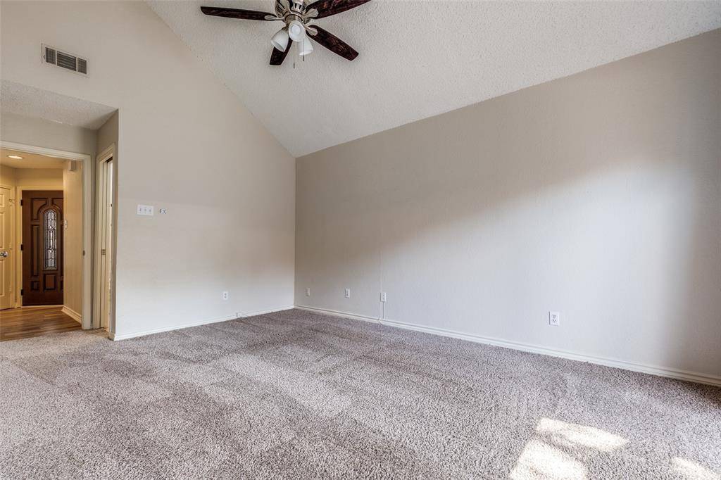 Charming 3-bedroom, 2-bath garden home in the desirable Bent Tree Gables neighborhood of Far North Dallas, offering approximately 1,271 sq ft of comfortable living space. The open living area features updated flooring, vaulted ceilings, recessed lighting, and a cozy fireplace that creates a warm and inviting atmosphere. The kitchen includes updated cabinetry, granite countertops, and a subway tile backsplash, while spacious bedrooms offer ample closets and private access to outdoor courtyard spaces. Ideally located near the North Dallas Tollway with easy access to shopping, dining, and highly-rated Plano ISD schools.