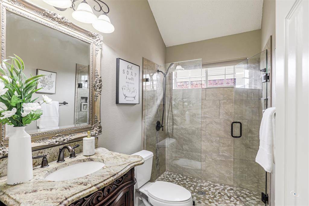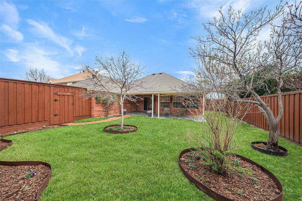 Welcome to this stunning EAST-facing single-story residence where elegance, comfort, and thoughtful updates blend beautifully. Nestled in the highly desirable Crestwood community within award-winning Plano ISD, this impeccably maintained home offers 3 bedrooms, a private study, 2 bathrooms, and an inviting open living space designed for both everyday living and effortless entertaining. This beautifully maintained home features an open floor plan filled with abundant natural light. A cozy study with French doors provides the perfect space for a home office. The elegantly appointed formal dining room flows seamlessly into the heart of the home, perfect for hosting intimate dinners or festive gatherings. The spacious family room, highlighted by a corner gas fireplace with an elegant mantel, opens gracefully to the cheerful breakfast area and the gourmet kitchen—a true cook's delight featuring 2019 granite countertops and designer backsplash, stainless steel appliances (gas range oven, and microwave), a center island, breakfast bar, and a wall of windows overlooking the private back yard. Step outside and discover your own serene outdoor retreat. The extended covered patio with slate flooring creates the perfect setting for relaxing evenings, morning coffee, or entertaining guests while enjoying the spacious and private backyard. The luxurious split primary suite offers a peaceful sanctuary complete with a cozy sitting area. The beautifully upgraded spa-inspired 2020 bath features dual vanities, a frameless glass shower, garden tub, and a generous walk-in closet, creating the perfect space to unwind and recharge. Custom stone-paved front entry walkway with decorative retaining walls and custom stone mailbox 2019, Roof 2023, HVAC 2017, guest bathroom shower upgrades 2020, Patio door upgraded to sliding door 2024, Patio ceiling fans 2025, fence stain painting 2022, Nest smart thermostat 2020, App-based smart irrigation system (Rachio) 2020,