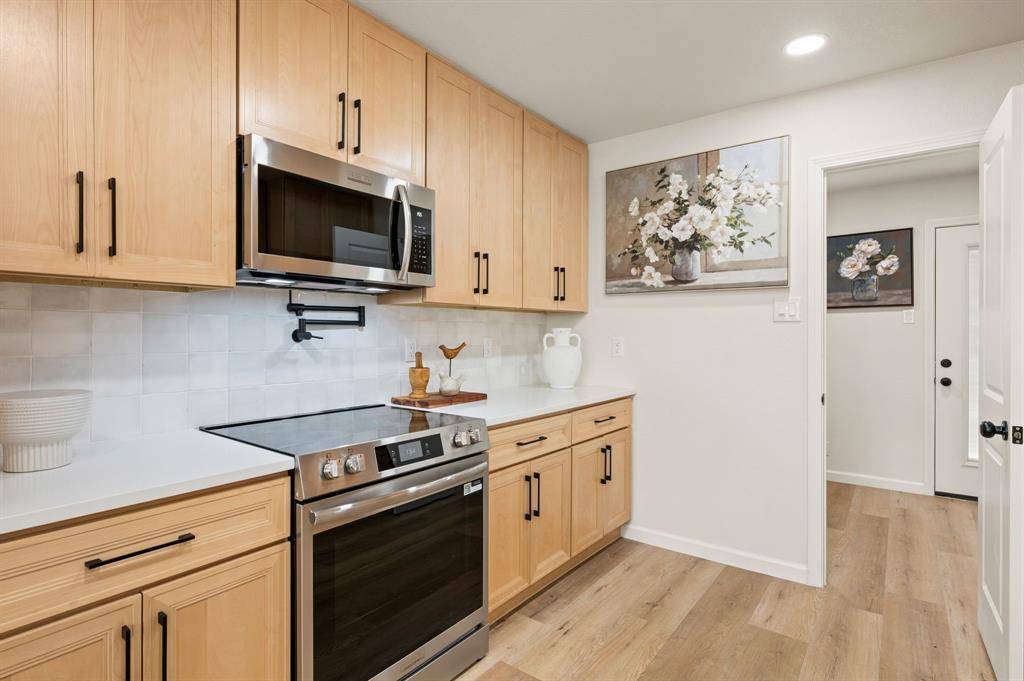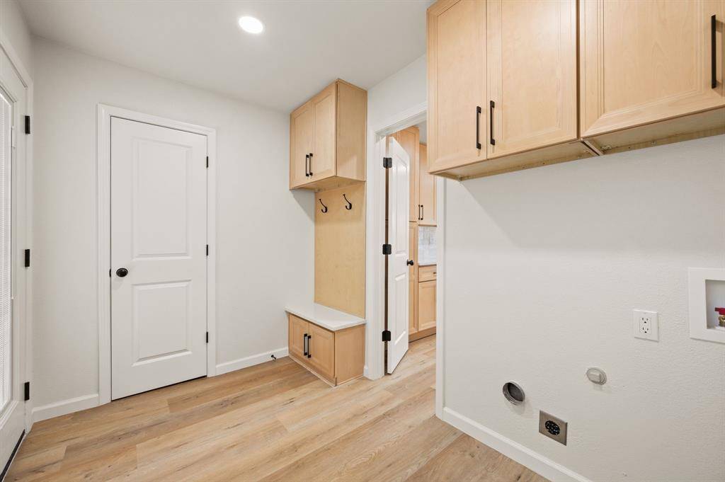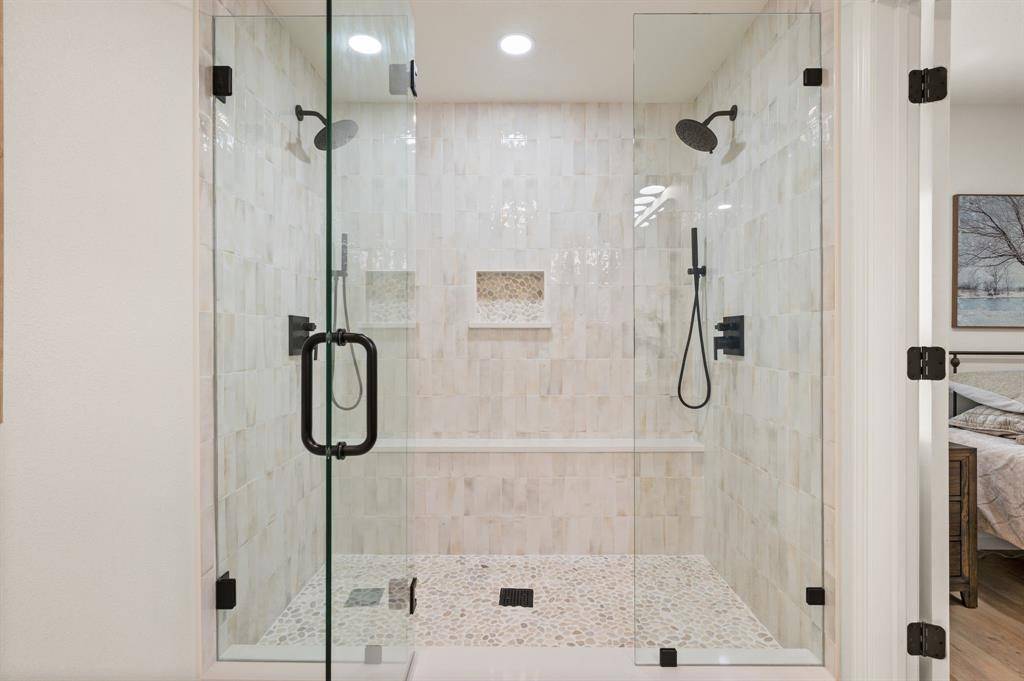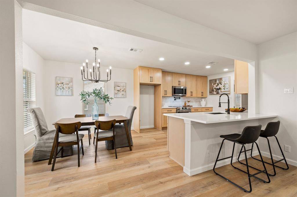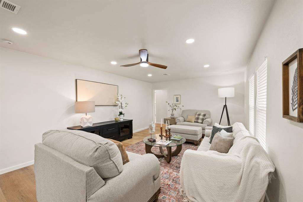 STUNNING fully renovated 3 bedroom 2 bath 1545 square foot home within walking distance to historic downtown Grapevine! Nothing has been left untouched in this one of a kind home. Complete high end interior & exterior remodel. Updates include new roof, HVAC, plumbing, windows, electrical, insulation, custom cabinetry, LVP floors, quartz countertops, paint inside & out, matte black fixtures, LED lighting & much more! Large living area that is open to kitchen & dining is perfect for entertaining. Your chef quality kitchen contains custom natural wood cabinetry with soft close hinges, high end stainless steel appliances, pot filler, pantry, quartz countertops, USB ports & granite sink. Spacious secondary bedrooms with custom closets that offers various living configurations are adjacent to fully renovated magazine quality guest bathroom. GIANT primary bedroom with seating area offers features not often found in homes of this size. Attached spa quality primary bathroom contains walk in shower for 2 with body sprays, dual vanities, quartz countertops and large walk in closet. Outside you will find brand new landscaping, gutters, sod & 8 foot privacy fence. Large backyard is perfect for spending time outside. Award winning GCISD schools. Located within minutes to major roads, schools, shopping, & parks. Homes like this do not hit the market often. Come see YOUR new home today!