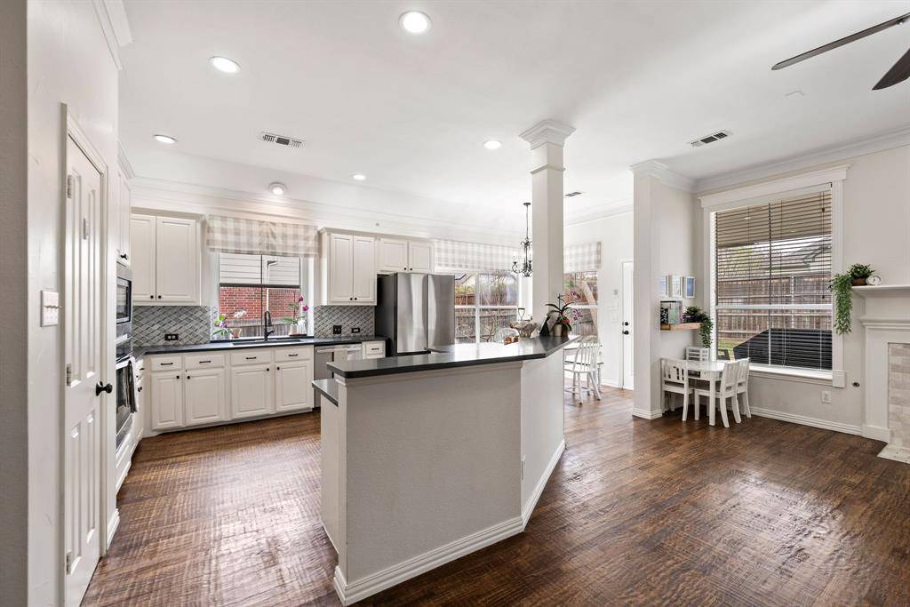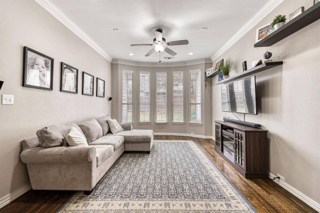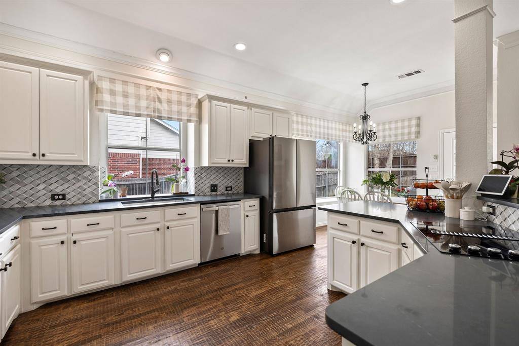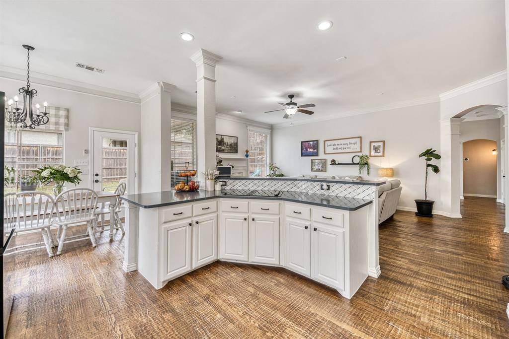 Welcome home to this bright and inviting 4-bedroom Lakeside Estates home in highly sought-after CARROLL ISD, just minutes from Lake Grapevine. Thoughtfully designed with 2 spacious living areas, 2 dining areas, and 2.5 baths, this home offers comfortable living and great spaces for entertaining. The main living areas feature solid hand-scraped hardwood floors, adding warmth and character throughout. The kitchen is beautifully appointed with quartz countertops, a marble backsplash, and a large island, perfect for cooking, gathering, and everyday living. Enjoy peaceful mornings or relaxing evenings on the large covered back patio, overlooking a spacious backyard with plenty of room for a pool. The neighborhood adds to the charm with a community pond complete with a dock for fishing and scenic walking trails. Conveniently located near Costco, Sam's Club, Central Market, Grapevine Main Street, Southlake Town Square, and DFW Airport, with abundant shopping and dining nearby. A wonderful combination of comfort, location, and lifestyle in the heart of the Metroplex.