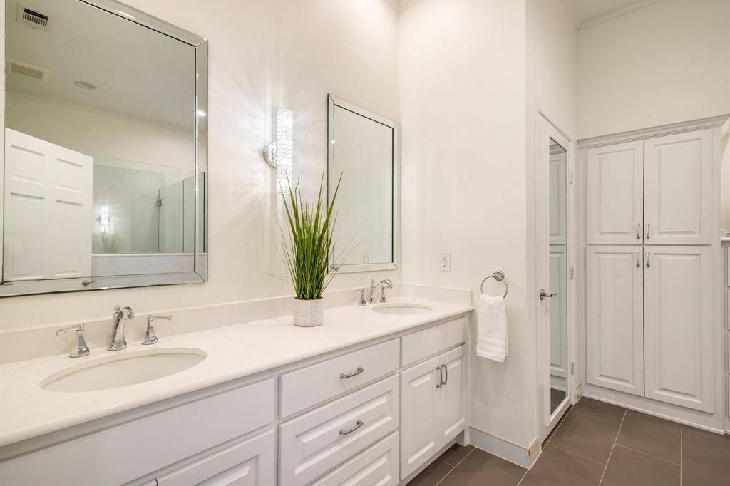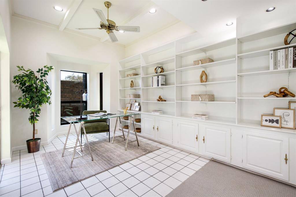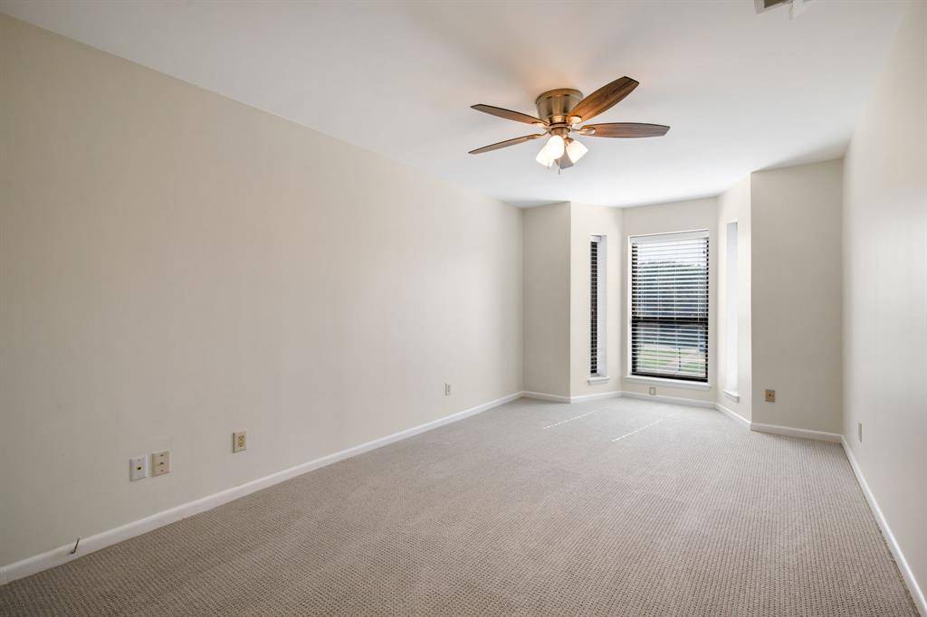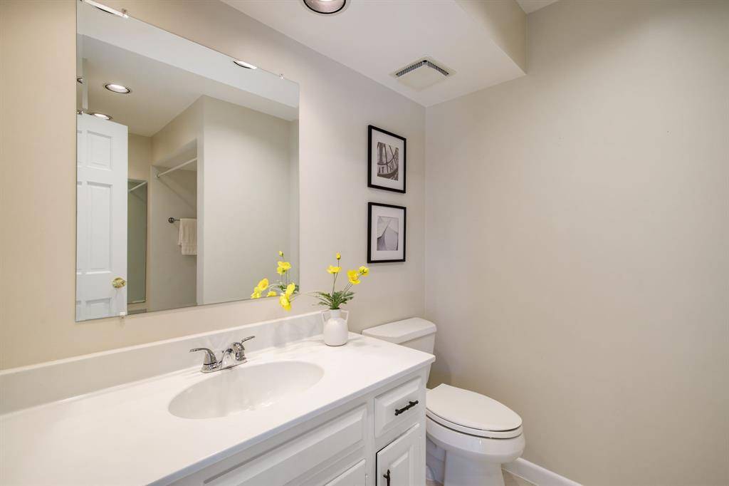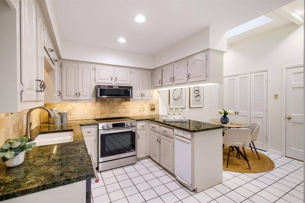 Rare opportunity to own an updated townhome with NO HOA ideally positioned directly across from the prestigious Brookhaven Country Club, offering a lifestyle of convenience and recreation. This well-designed home features a desirable floor plan with the primary suite located on the first level, creating a private retreat. The beautifully updated primary bathroom showcases dual sinks, custom mirrors and sconces, a wall of custom built-ins, an enormous walk-in shower, and a spacious walk-in closet. The primary bedroom also features recently installed LED can lighting. The expansive family room is the heart of the home and highlights a striking brick fireplace with built-ins, perfect for relaxing or entertaining. Adjacent to the family room is a versatile flex space ideal for a home office or library with extensive built-in bookshelves. Large sliding glass doors in both spaces bring in abundant natural light. The kitchen offers granite countertops, freshly painted cabinetry, an electric range, built-in microwave, and opens to the breakfast nook, while a spacious dining area sits at the front of the home. Upstairs you will find two bedrooms, a full bath, and a large, air-conditioned storage area perfect for a craft room, exercise space, or hobby room. One upstairs bedroom includes a private balcony. The backyard is designed for low-maintenance living with artificial turf, a pergola for outdoor relaxation, and beautiful azaleas. All carpet in the home is new and the roof was replaced in 2026. Both air conditioners are newer - 2021 & 2023, and the two Water Heaters were replaced in 2025. Brookhaven Country Club offers three championship golf courses, tennis, pickleball, fitness center, swimming, and dining with several membership levels available. The location is convenient to shopping, restaurants, Addison, and major highways.