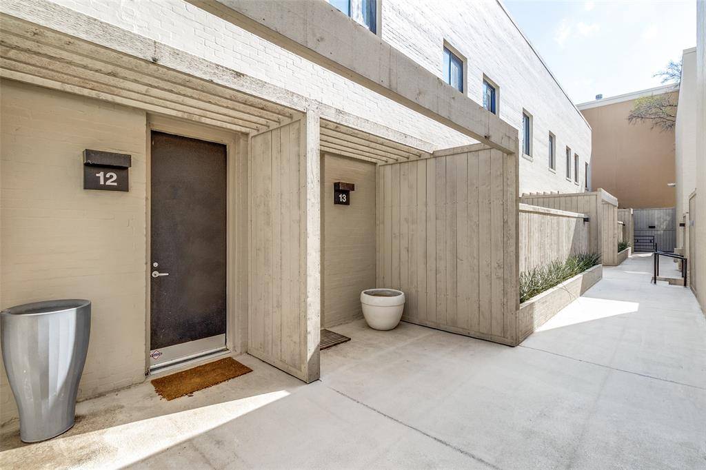 Contemporary two-story condo designed by Lionel Morrison, located in the coveted Uptown area. This residence features timeless architecture with an abundance of natural light, highlighted by walls of floor-to-ceiling windows overlooking two private courtyards. The main level offers high ceilings and white oak hardwood flooring throughout the living and dining spaces. The flexible floor plan includes two spacious bedrooms, each with an ensuite bath: one with a walk-in shower and the other with a soaking tub—plus a convenient powder bath on the main floor. The galley kitchen provides abundant storage and is finished with quartzite countertops and backsplash. Additional features include motorized shades, gated entry, two secure parking spaces, and a large storage unit. HVAC replaced 2025.