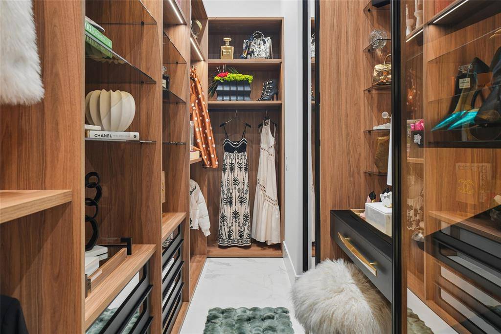 The gourmet kitchen is a chef's dream, complete with state-of-the-art Gaggenau appliances, custom Italian cabinetry, and an oversized island perfect for gathering. The primary suite offers a tranquil retreat with private bar and built-in coffee machine and features a spa-like bath with a soaking tub and walk-in closet. Each additional bedroom is equipped with an en-suite bath and Brizo plumbing fixtures throughout.