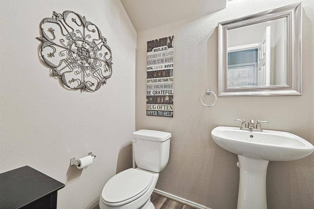 The kitchen offers modern black appliances, including a refrigerator, along with a spacious pantry for plenty of storage. A convenient half bath is located downstairs for guests.