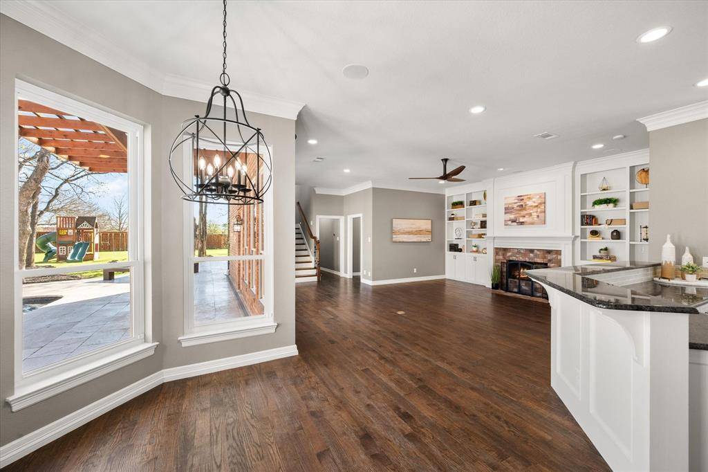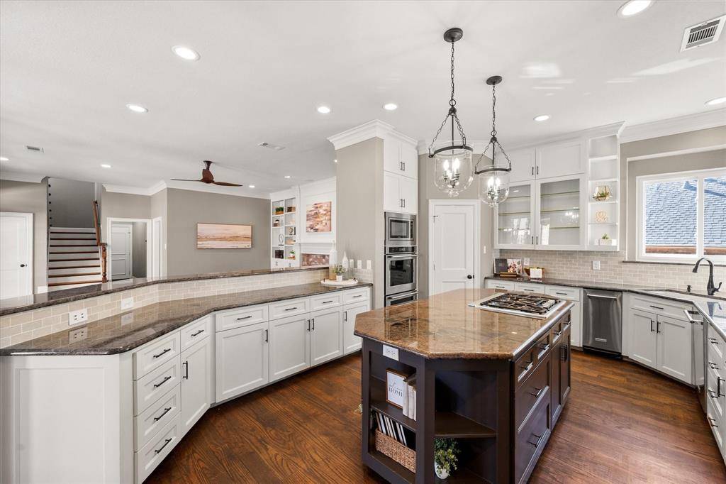 Elegance and modern comfort in this beautifully updated home in sought-after South Ridge Lakes community of Southlake, zoned to award-winning Carroll ISD. Situated on an oversized lot in a quiet, tree-lined cul-de-sac. A grand entry with soaring ceilings welcomes you into an elegant formal living room anchored by a warm fireplace and a wall of windows that flood the space with natural light while showcasing views of the backyard pool. The heart of the home is the open-concept family room, kitchen, and breakfast area, designed for effortless entertaining and comfortable living. Kitchen features custom abundant cabinetry, SS appliances, double ovens, granite counters, large center island, breakfast bar, and a convenient butler's pantry with mini bar. Private primary suite offers a serene sitting area with bay windows overlooking the pool and mature backyard trees. Spa-inspired ensuite bath includes double vanities, jetted tub, separate frameless walk-in shower, and a massive walk-in closet. Quality finishes include hand-scraped hardwood floors, new carpet, Low-E double-pane windows, updated lighting, and fresh interior paint. Central Vacuum, Tesla Charger in 3-car garage. A split secondary bedroom and full bath downstairs provide flexibility for guests or multigenerational living. Upstairs features two bedrooms, Jack & Jill bath, large game room with built-in wet bar and custom cabinetry, ideal for entertaining, homework, or relaxing. Resort-style backyard oasis, featuring an expansive grassy backyard with mature trees surrounding a sparkling pool & spa complete with a shallow tanning deck. Whether hosting summer evenings, unwinding under the covered patio, or enjoying peaceful sunsets poolside, this outdoor space is designed for both relaxation and connection. Residents enjoy community amenities including a pool, tennis & pickleball courts, playground, and clubhouse. Minutes from shopping, dining, parks, and short walk to Carroll SH. Easy commute to DFW Airport.