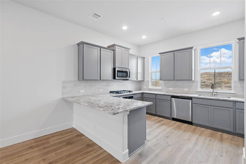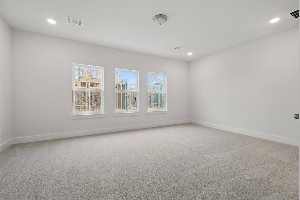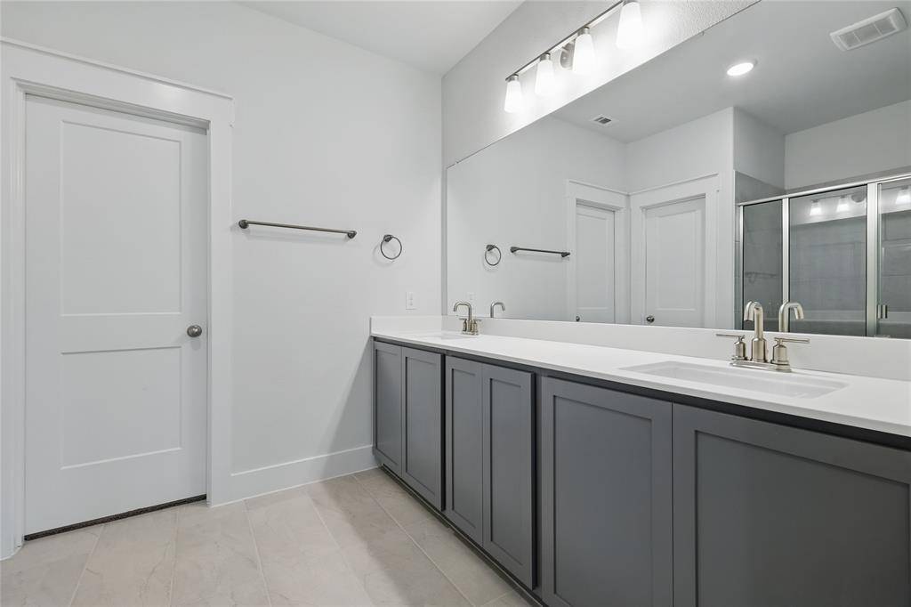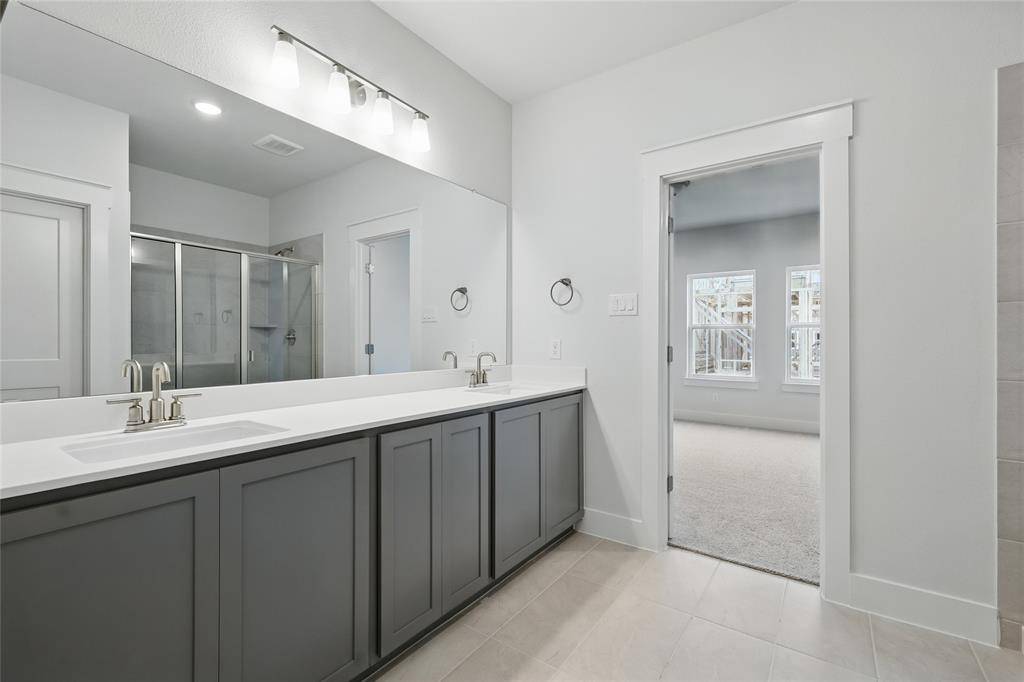 This impressive three-story Legacy townhome showcases a spacious 2,185 sqft layout designed for contemporary living. At the top level, the secluded primary suite offers a true retreat, complete with a luxurious shower with a built-in seat and an expansive private closet that provides exceptional storage. A secondary bedroom on this floor also features its own ensuite bath and a spacious private closet, perfect for guests or a home office. The heart of the home lies on the second floor, where the open-concept layout connects a sun-drenched great room with a sleek, modern kitchen and a stylish dining area. Outfitted with state-of-the-art appliances and ample counter space, this level is designed for effortless entertaining and everyday living. On the first floor, you'll find a third private bedroom with its own ensuite bathroom, an ideal space for guests, in-laws, or a quiet work-from-home setup. A rear-entry two-car garage offers secure and convenient access to your home. The Collin Creek community promises to be a vibrant living environment, seamlessly integrating retail, dining, and entertainment options to create a true destination lifestyle. Nestled within the revitalized former Collin Creek Mall area, this modern community will incorporate ample green spaces and amenities that encourage residents to live, work, and play together. This exciting transformation is set to become the dynamic heart of Plano, fostering a sense of community and convenience that is second to none.
