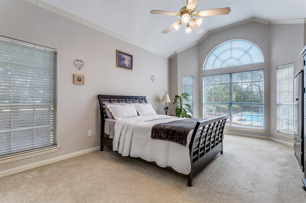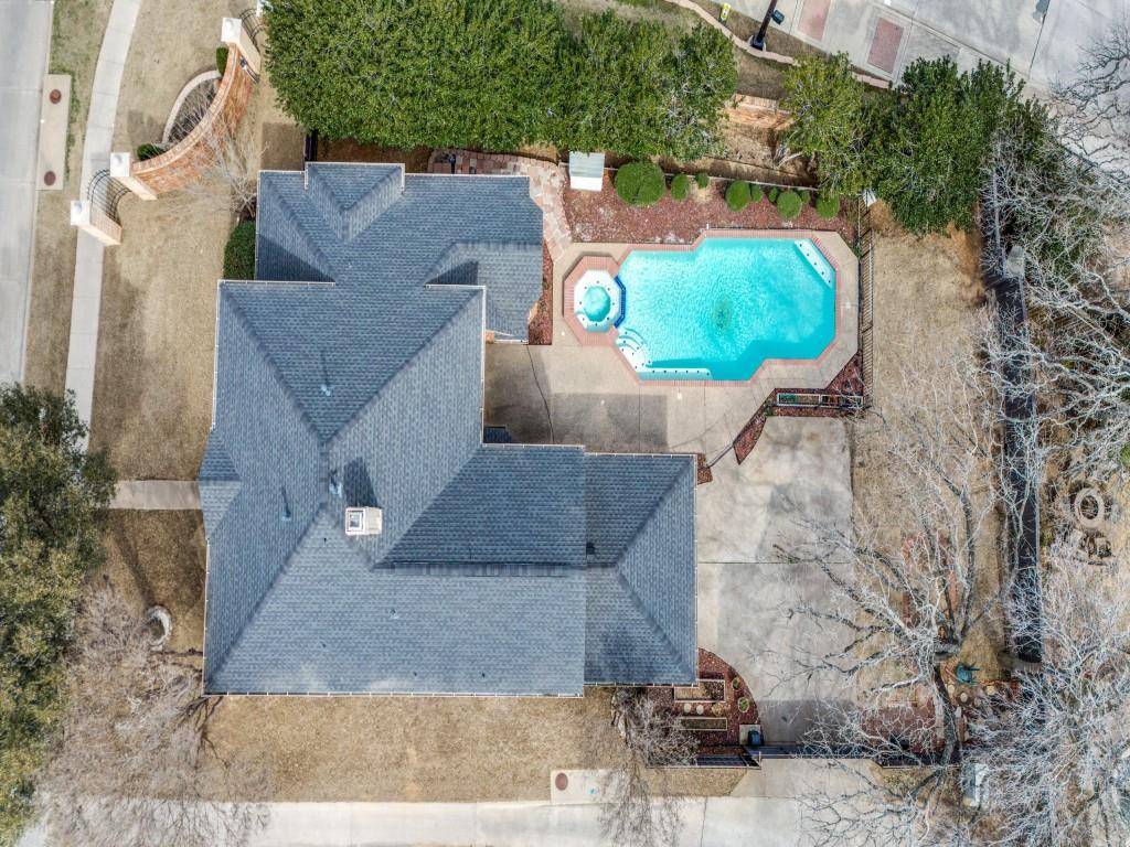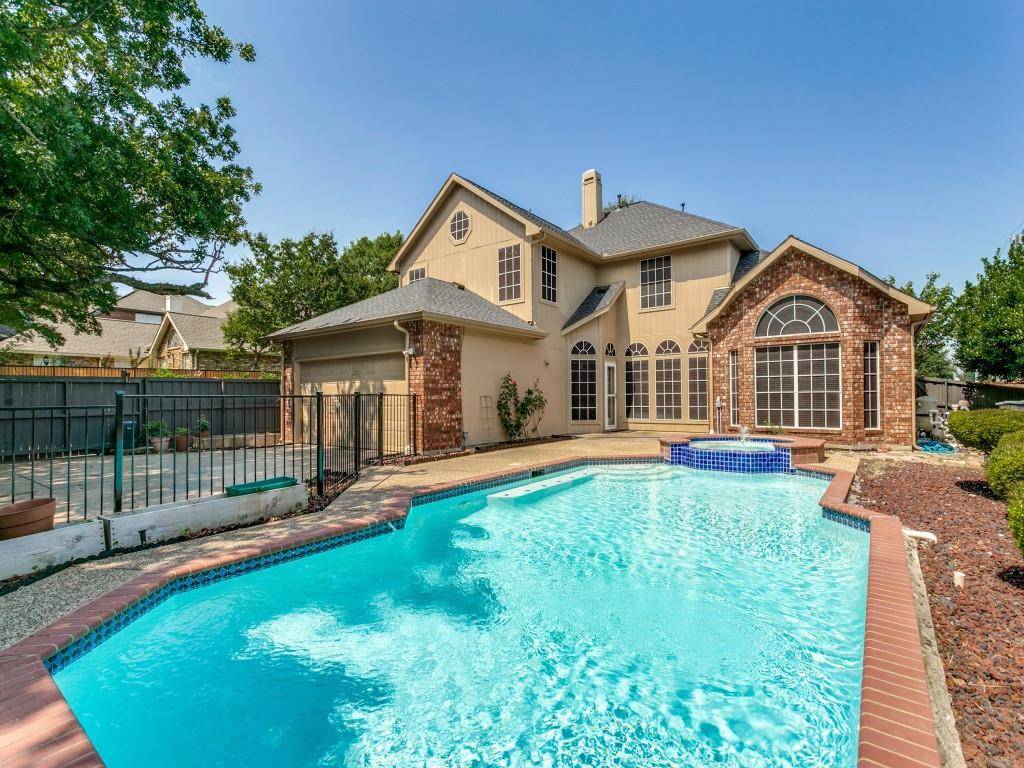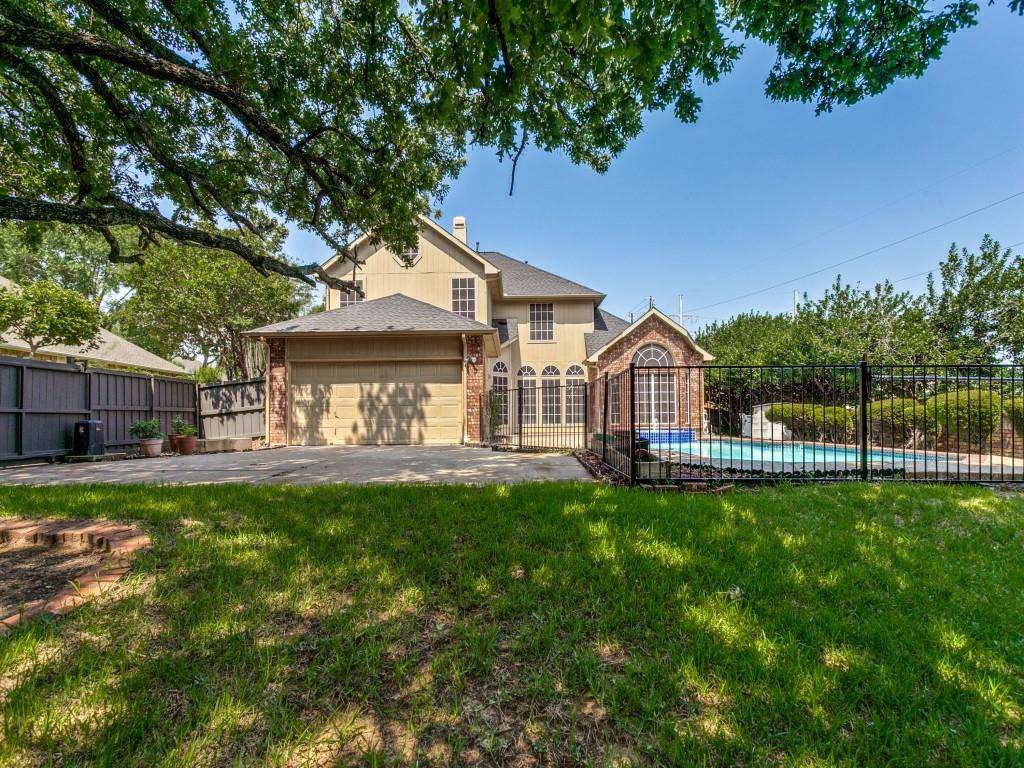 Lovely home in Oakbend Estates on corner lot for added privacy with a pool! Spacious living area with cozy gas fireplace and wall of windows allowing warm natural light plus views of the pool. Kitchen offers an island, granite countertops and stainless steel in-wall appliances. There is an additional cooktop with exterior venting in the garage! The primary bedroom located downstairs has a vaulted ceiling and bay windows allowing tranquil pool views. The primary bathroom has a jetted garden tub, separate shower and large walk-in closet. Split formals off entry. Formal living would make a great home office. Upstairs has a large game room with a vaulted ceiling and walk-in closet as well as secondary bedrooms. Convenient laundry chute in upstairs bathroom! Outback offers a retreat for family fun or just a day to relax.... Refreshing pool is surrounded by lush landscaping and mature trees creating a serene space. Ample grass for the dog to play. Fenced drive with electric gate for privacy is perfect for basketball or a safe area for the kids to play. Neighborhood playground with basketball court. 2020 roof; 2022 fresh paint inside and out and new carpet upstairs; 2023 new HVAC units; 2024 new water heater; 2025 new cooktop, gate opener, resurface pool & new LED pool lights. Highly rated Coppell schools and conveniently located less than 1 mile from highway 121!
