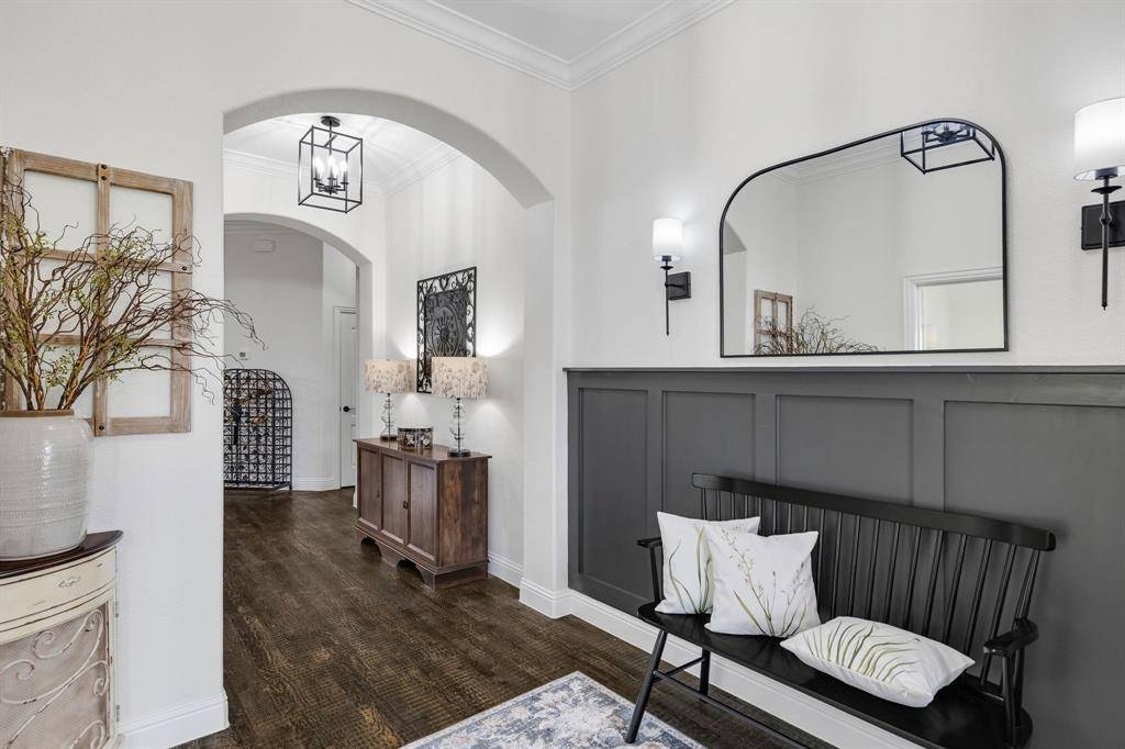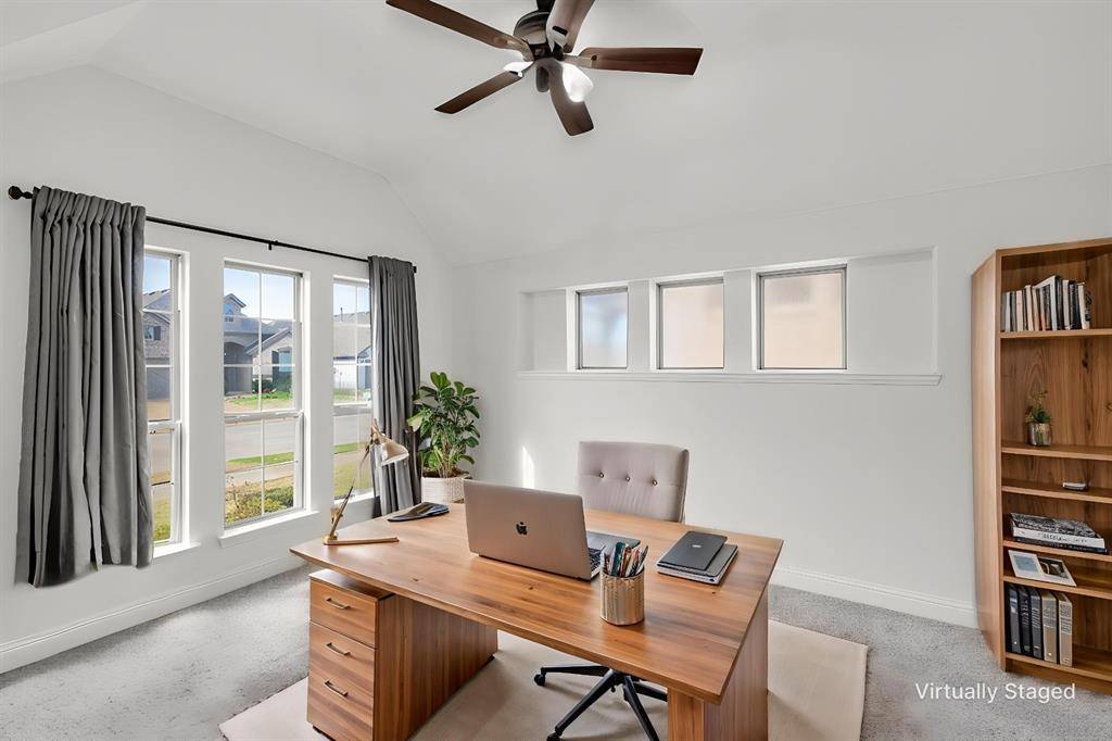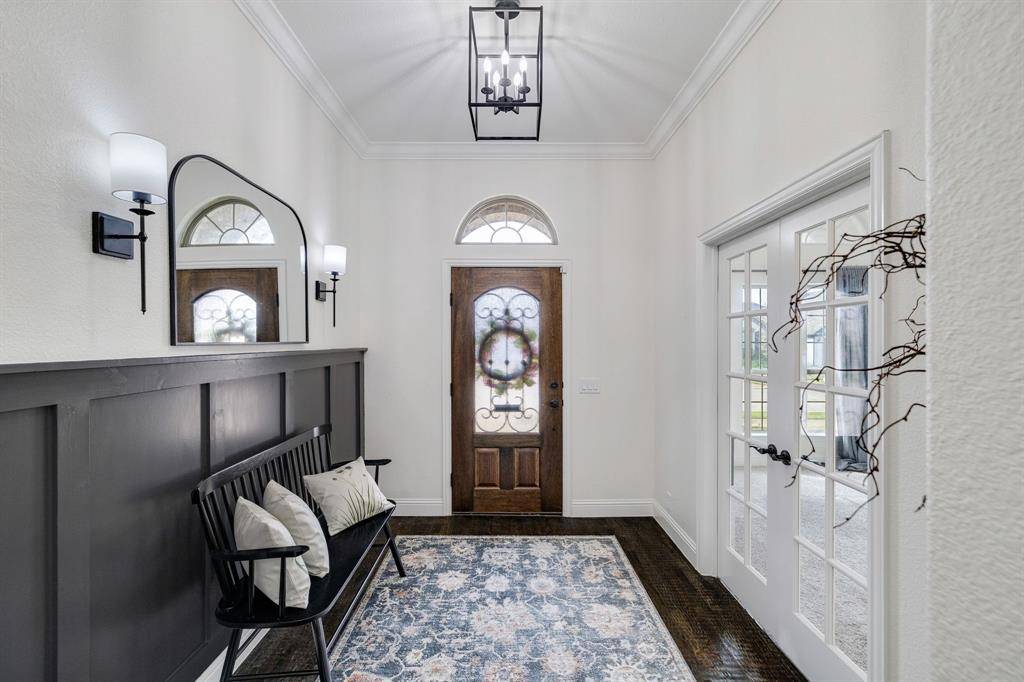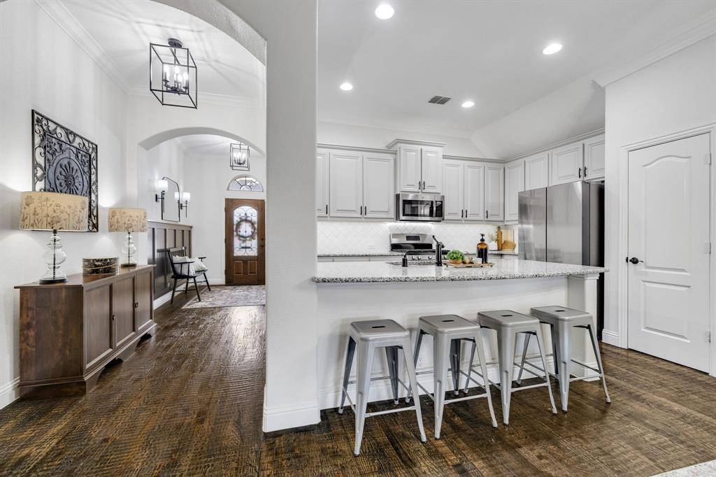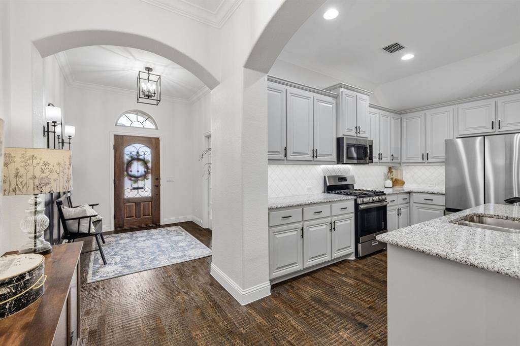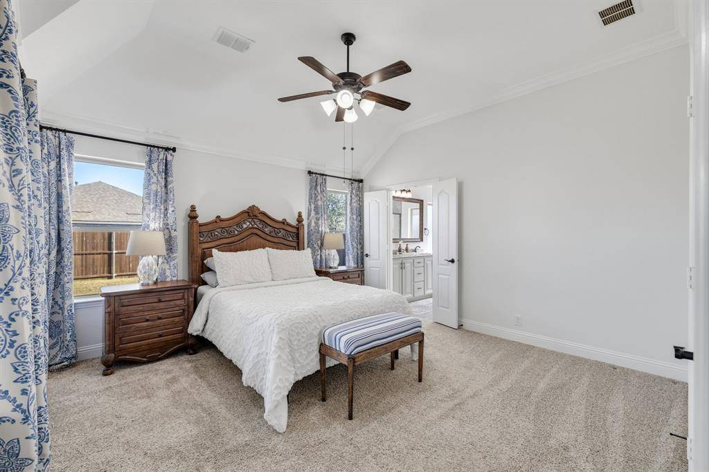 Welcome to this beautifully maintained 3 bedroom, 2 bathroom home with a dedicated study, built in 2020 and ideally situated on a quiet cul-de-sac in one of the fastest growing areas in North Texas. Inside, you'll find real hand-scraped wood floors flowing through the main living areas, complemented by crown molding, decorative lighting, and fresh interior paint that create a warm and inviting atmosphere. The spacious living room is anchored by a stunning full stone fireplace with a cedar block mantle and raised hearth, making it the perfect focal point for relaxing or entertaining. The kitchen features granite countertops, ample cabinetry, and a functional layout that opens seamlessly to the living and dining spaces. Two generously sized guest bedrooms and a private study offer flexibility for family, guests, or a home office. All windows are energy efficient, with tinted windows in the living area providing added privacy and comfort. Step outside to enjoy the large covered patio overlooking a fenced backyard, ideal for outdoor dining, gatherings, or simply unwinding. Additional highlights include a sprinkler system and an epoxy coated garage floor. The community includes access to a swimming pool, tennis courts, and walking trails. Located in a prime and rapidly developing corridor near the PGA headquarters and the future Universal Studios theme park, this home offers incredible access to shopping, dining, and entertainment while still maintaining a peaceful neighborhood feel. Zoned for the highly prestigious Prosper ISD. Don't miss the opportunity to own a move-in ready home in one of North Texas' most exciting growth areas.