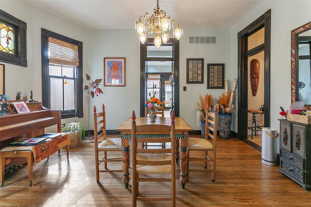 Located in one of Dallas' most sought-after neighborhoods, known for its rich culture, art and entertainment scene, and walkable streets, this beautifully maintained 1911 Craftsman home with a charming Victorian cupola welcomes you. This one-of-a-kind, three-story gem in the vibrant Winnetka Heights Historic District, known for its architectural character, comes with modern updates. It offers unique features such as a cupola, wrap-around porch, hardwood floors and molding, a stained glass window, metal spiral staircase and custom lighting fixtures throughout. The first floor with 2 living areas, a half bath and a large backyard with pavers make this home perfect for entertaining while also featuring a chef's kitchen with a Bertzzoni gas range, expansive island and bar seating. The 2nd floor holds 3 bedrooms and 2 baths while the open 3rd floor can be utilized as a large flex space or a secondary master bedroom. Extra storage area in rear building (~96 sqft) and EV charger available in the driveway. Great opportunity for a spacious home close to Bishop Arts, Kessler Park, Steven's Park Golf Course, Trinity Groves, Downtown Dallas and major transit routes.