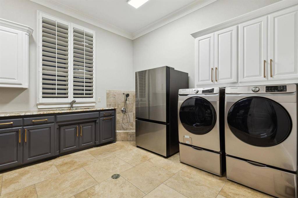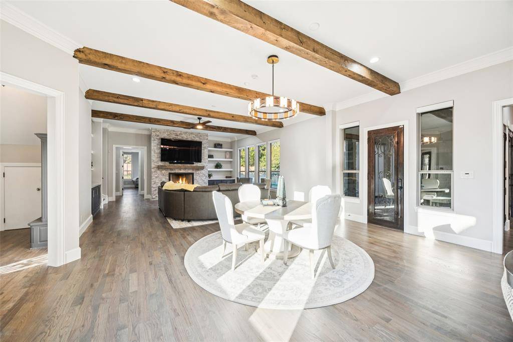 Nestled on a sprawling 1.229-acre lot within the prestigious gated enclave of Point Noble on Grapevine Lake, this breathtaking estate has been masterfully renovated to blend timeless elegance with modern luxury. A grand foyer with a sweeping staircase sets a majestic tone upon entry, offering an unforgettable first impression. At the heart of the home lies a chef's kitchen of unrivaled quality, where beamed ceilings soar above professional-grade Wolf appliances, a vast island, and a discreet butler's pantry—designed for both grand entertaining and everyday indulgence. Throughout the home, brand-new flooring enhances each meticulously reimagined space, while a new high-efficiency HVAC system with an advanced EV air conditioning upgrade ensures comfort year-round. The fully updated garages feature custom cabinetry systems and pristine epoxy flooring, ideal for car enthusiasts and collectors alike. Designed for luxurious living, the estate boasts a wealth of exceptional amenities, including dual game rooms, a stately study, a glass-enclosed wine room for showcasing your finest vintages, a state-of-the-art home theater, and a private gym. Car enthusiasts will appreciate the five-car garage and gated motor court. Outdoors, a resort-style pool and spa shimmer under the Texas sun, while a private pickleball court offers the perfect balance of recreation and leisure. Set against a backdrop of serene natural beauty, this estate embodies the essence of a private resort, where sophistication meets tranquility in one of the most coveted locations on Grapevine Lake.