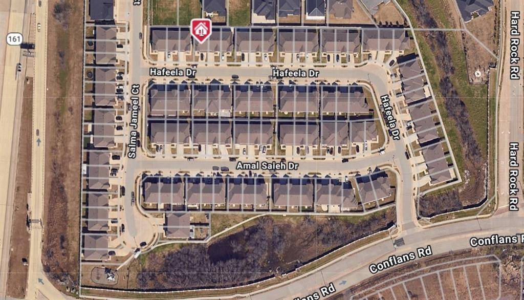Starting at Hwy 161 and Conflans Rd, go E on Conflans Rd to Mahmound Egall Dr, 2nd cross street is Hafeela Dr, turn L and the property is on the R.