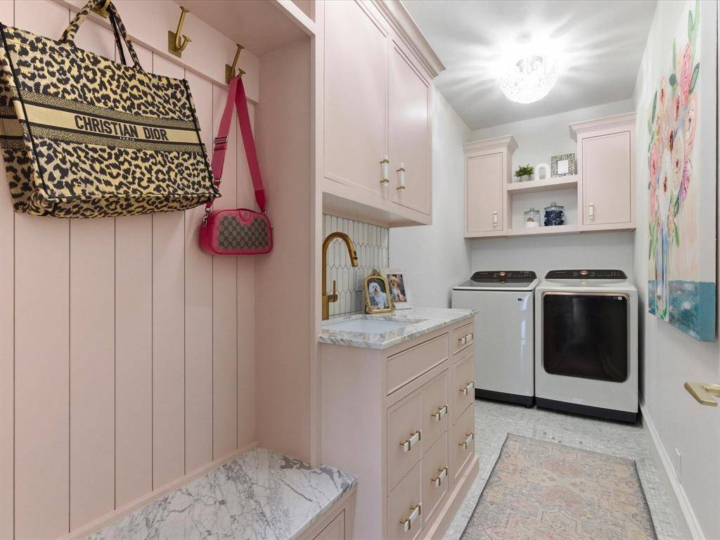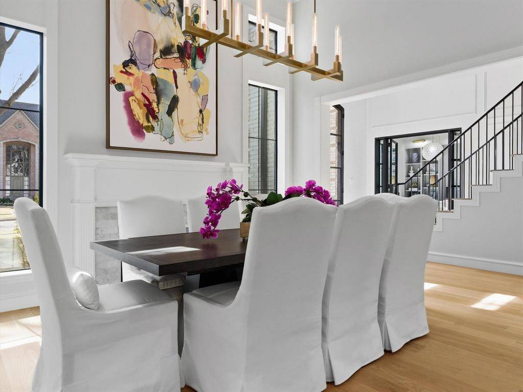 Elegant 11-foot iron front doors set the tone for this remarkable home. Marvelous open floor plan is graced with four sets of double iron doors, an iron stair railing, designer lighting & rich hardwood flooring throughout the entire downstairs living areas. Marble accents, custom cabinetry & built-ins are thoughtfully integrated, creating a home that feels both curated & timeless.