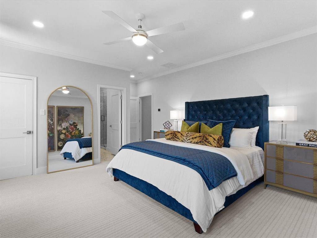 The primary suite serves as a private sanctuary, complete with a master closet featuring custom-built cabinetry. Upstairs, a generous second master suite is ideal for use as a mother-in-law suite, a versatile office, or a kids' homework or craft room, an oversized game room or media room & a dedicated office round out the interior, ensuring ample space for work, play, and everything in between.