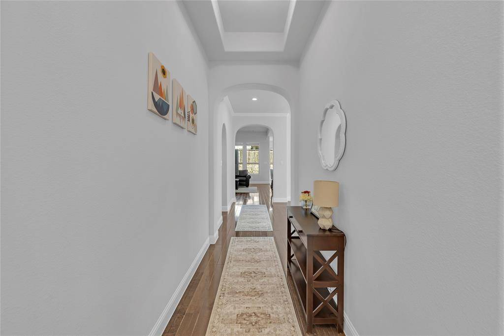 Welcome to the gorgeous one story home located within highly sought-after Phillips Creek Ranch and exemplary Frisco ISD! Both elementary school and middle school are within walking distance! Energy efficiency features save you hundreds off your utility bills every month. Stunning Stone and Brick Exterior, Wood Floors throughout hall way, study room, and open concept living rooms. Carpet in all four bedrooms. Gas fireplace, and tankless water heaters. The kitchen features a spacious island, butler's pantry, granite counter tops, oven, microwave, gas cooktop, and stainless steel appliances. Four bedrooms plus a study gives you plenty of space for a private home Office or quiet room for home schooling. The master suite is featuring with separate soaking tub and shower, duel vanities, and two over-sized walk-in closet. Convenient access to the Dallas North Tollway, 380, and Highway 121. HOA includes front lawn maintenance, house security alarm, community pools, fitness center, club house, playgrounds, and trails.