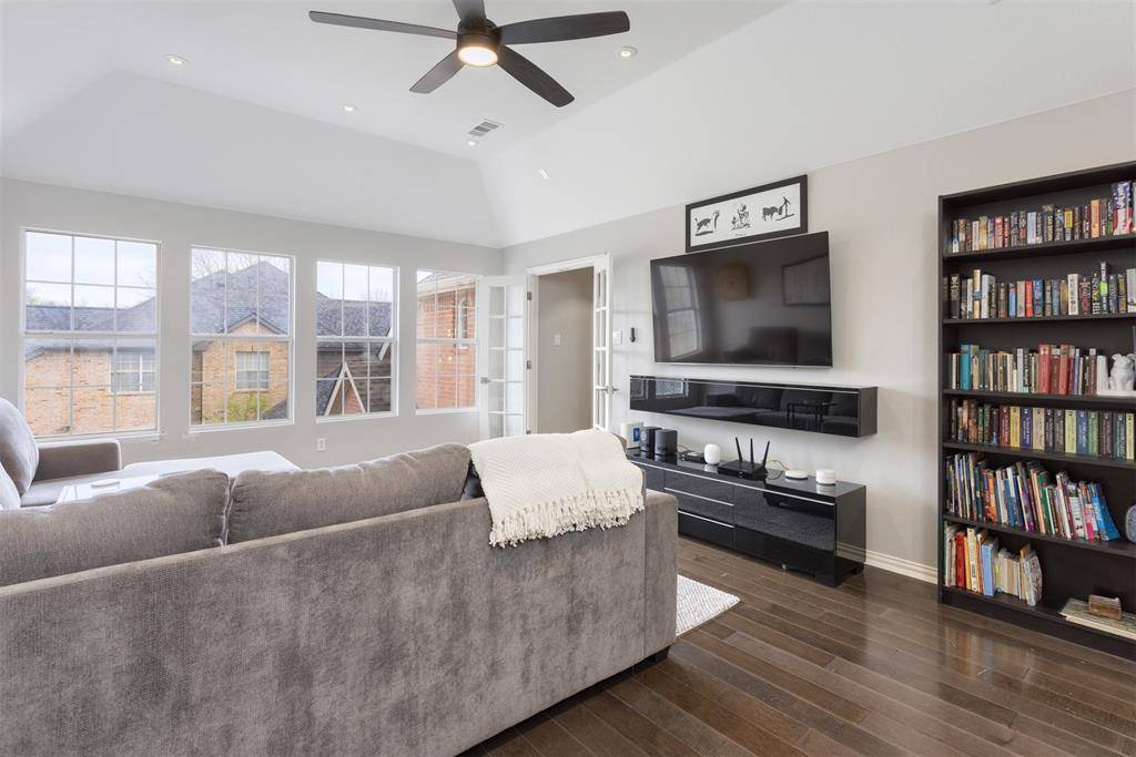 Beautifully updated home in the desirable Woodhaven neighborhood of Stonebridge Ranch with every detail thoughtfully refreshed. This stunning property features rich wood flooring and fresh paint throughout, creating a light and cohesive feel from the moment you enter. The Chef's appointed kitchen is the heart of the home, offering premium finishes, including Wolf, Viking and Sub Zero appliances with ample workspace and a layout perfect for everyday living and entertaining. The open layout flows seamlessly into the main living area. A highly desirable first floor guest suite with ensuite bath, currently used as an office and could also provide a perfect space for guests or multigenerational living. Upstairs you will find four additional spacious bedrooms and versatile bonus room. With nothing left undone, this home is truly move-in ready. Step outside to your private backyard retreat featuring a covered outdoor living area, sparkling pool, and elegant tumbled marble deck-perfect for relaxing and hosting friends and family. Ideally located within walking distance of Bennett Elementary. This is a rare opportunity to own a fully updated home in one of Stonebridge Ranch's most sought-after neighborhoods.