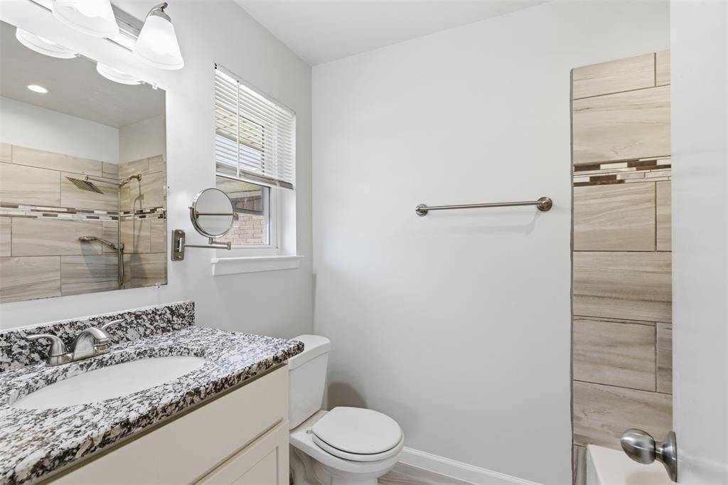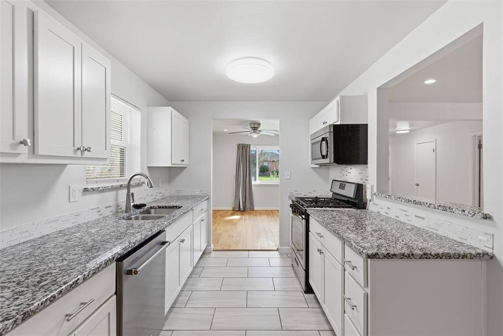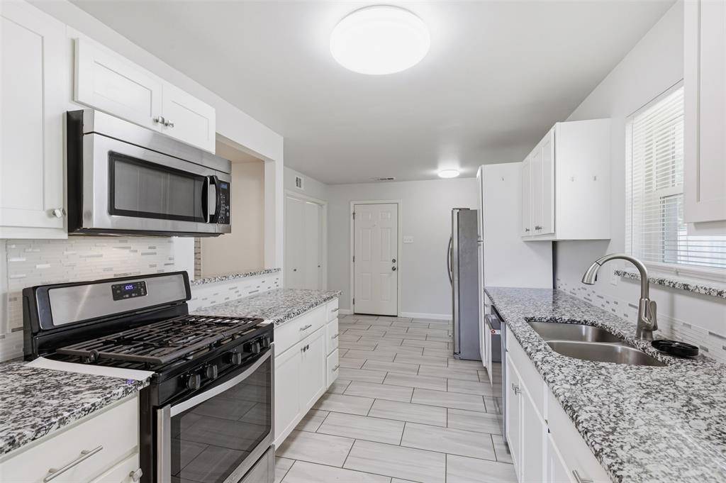 Tucked into an established Oak Cliff neighborhood, this 3 bedroom, 2 bath brick home blends comfort and functionality in a well-designed floor plan. The home has a balanced blend of open concept and dedicated areas. A spacious living room flows into the kitchen and a large dining area...ideal for both everyday living and entertaining. The kitchen provides ample cabinet storage and workspace, with convenient access to the attached rear entry garage for easy unloading. The private primary bedroom has its own ensuite bath and walk-in closet, while two additional bedrooms share a full hall bath. Inside, you'll find many sought-after features...hard wood flooring and ceramic tile throughout, fully updated kitchen and baths, brand new paint, newer vinyl windows, a whole-home surge protector, a recently replaced water heater, and an HVAC unit less than 5 years old! The stainless refrigerator and washer and dryer will also stay with the home. From the tidy curb appeal to the functionality, the outside space offers a lovely extension of livable area. The front has been xeriscaped with mature, low maintenance landscaping. The backyard features a 15x20 deck and a 10x12 storage shed that is all securely contained within 8ft wood privacy fencing. The attached garage offers additional storage and parking convenience with an alley configuration. Easy access to major thoroughfares, shopping, dining, and Bishop Arts District, this home presents a fantastic opportunity. Don't miss your chance to own in this desirable Dallas location!