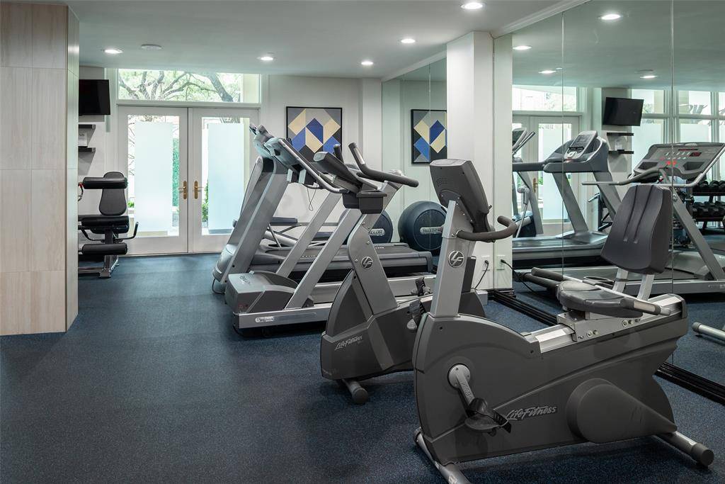 Other amenities include: a pretty powder room with a vanity set into an antique chest, a utility room with full-size washer and dryer as well as a second refrigerator, valet service, 2 garage parking spaces, a spacious storage unit, a lovely swimming pool, a charming meeting room, and a well-equipped gym.