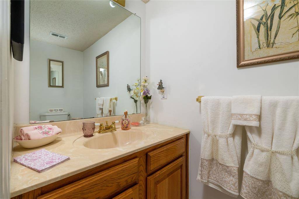 Nestled in the highly sought-after Countryside Estates of Grapevine, this well-loved home has been owned by the same family for 37 years. The price reflects the opportunity for cosmetic updates, with original carpet still in the living room and primary suite. Recent improvements include beautiful wood flooring in the hallway, staircase, and upstairs, roof replaced just two years ago, upstairs HVAC unit installed in 2025; the downstairs unit is only a few years old. The refrigerator, washer, and dryer—each less than two years old—may remain with an acceptable offer. The primary suite is conveniently located on the main level, while secondary bedrooms are upstairs. A tucked-away formal dining room offers the perfect space for a home office. The kitchen features its own dining area, a walk-through storage space, and a pantry. Outside, enjoy the charming, covered deck with a swing, a covered carport, and access to the garage. This premier location places you minutes from the boutiques in Historic Downtown Grapevine, Grapevine Lake, DFW Airport, and upscale shopping and dining in Southlake. Nearby Pecan Park and Parr Park. Highly rated GCISD schools add to the appeal. HOA is voluntary.