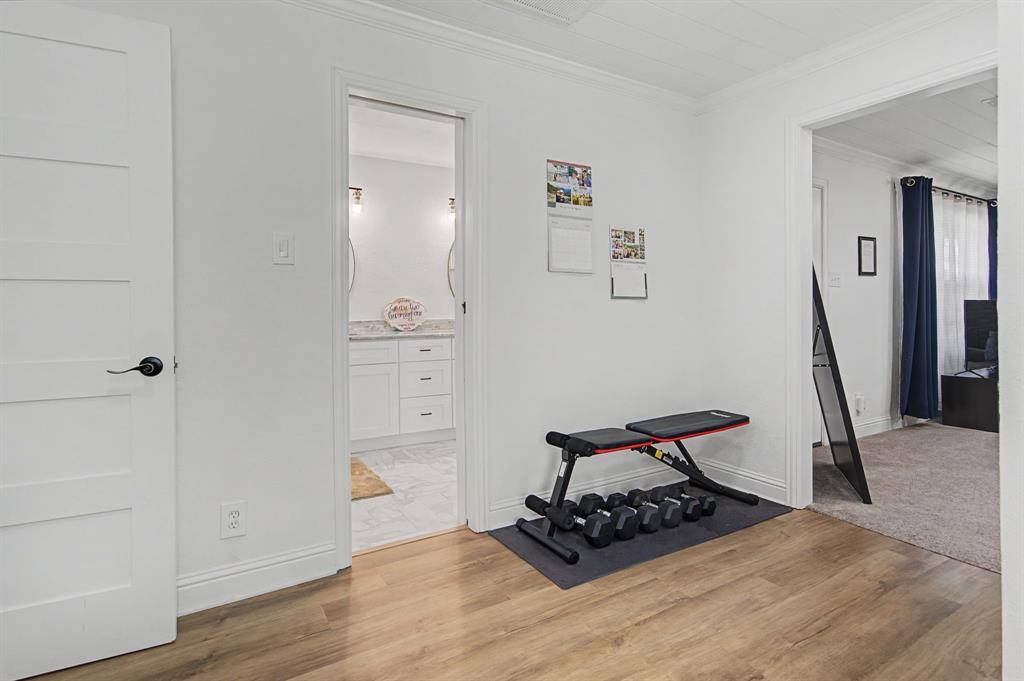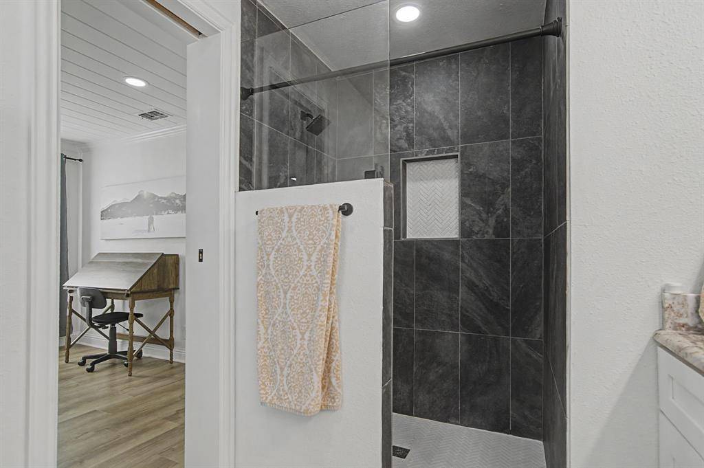 Fully remodeled and thoughtfully upgraded, this 3-bedroom, 2-bath home offers a blend of modern updates and original character in the heart of Richardson. Originally built in 1954 and completely renovated in 2022, the home features 1,666 square feet of well-designed living space with an open, functional layout suited for both everyday living and entertaining. Recent upgrades—including new luxury flooring (2026), a tankless water heater (2025), and a WiFi-enabled garage motor (2025)—provide added efficiency and convenience. The main living areas connect seamlessly to the kitchen and dining spaces, while the expansive primary suite offers flexibility for a variety of uses. Features include a gas fireplace, space for a sitting area, and a versatile attached den or office. A custom-built barn door (2025) adds a distinctive design element while providing separation between the bedroom and den. Situated on a 0.21-acre lot, the backyard offers ample space for outdoor use, entertaining, or future customization.