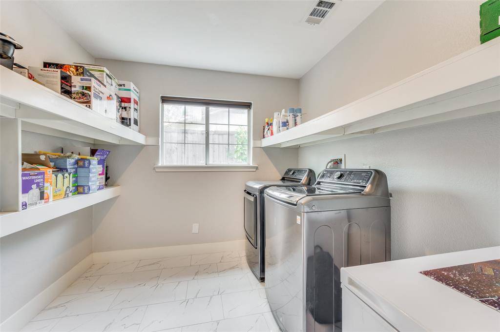 If you're looking for ample, move-in-ready space, in a picturesque neighborhood filled with trees and greenery, this gorgeous home has you covered. Downstairs you'll find an open layout perfect for entertaining, as well as all four bedrooms and three bathrooms. Enjoy privacy upstairs, where the bonus room is perfectly situated to be an office, gym, movie theatre, or 5th bedroom. The kitchen is bright and open, featuring quartz countertops, a farm sink, and a darling built-in banquette breakfast nook. The backyard features a newly poured concrete patio and an 8ft red cedar privacy fence. Right next door is Kerr Park, where you'll find a playground and lighted tennis court. Other updates include: PVC plumbing (2022), electric heater and duct installation (2023), attic insulation (2023), energy-efficient double-celled blinds (2023), exterior landscaping (2024). This home is perfectly situated in the middle of the metroplex. With easy proximity to every major Dallas highway, you can get literally anywhere in DFW in under 20 minutes. Perfect for buyers who commute in opposite directions, or need to be close to both airports, or just want a beautiful neighborhood with easy access to everything in North Texas. All that's left to do is move in!