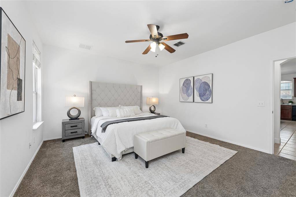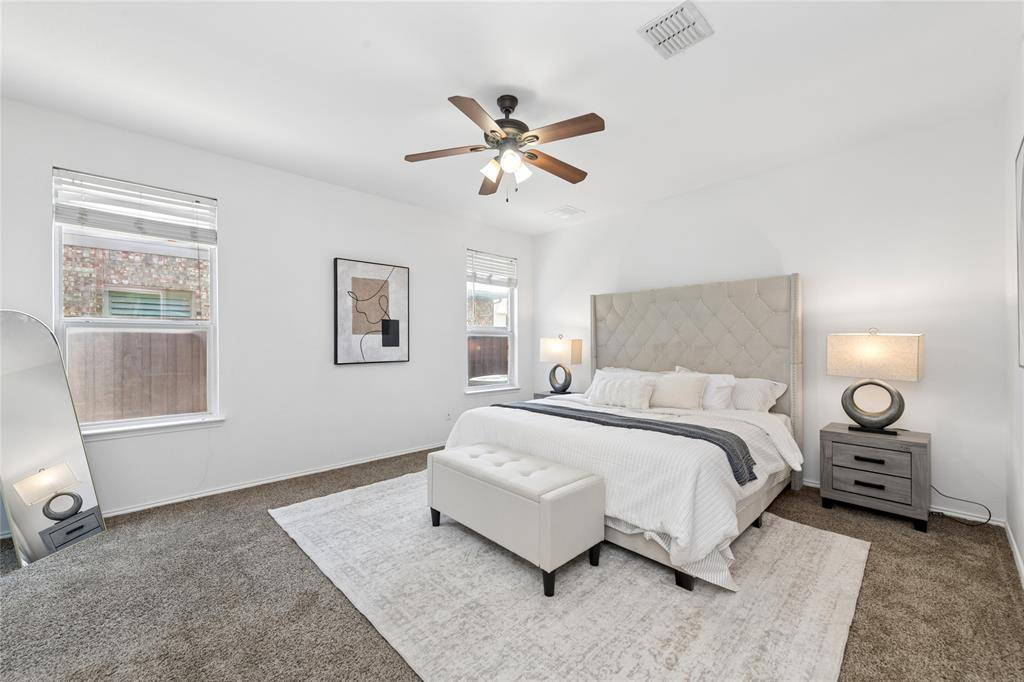 Welcome to beautifully designed 5-bedroom, 4-bathroom home located in a highly sought-after community within top-rated Frisco ISD. This spacious and thoughtfully laid-out home offers exceptional functionality and comfort. The first floor features the primary suite along with a secondary bedroom and full bath—perfect for guests or multigenerational living. You'll also enjoy two inviting living spaces downstairs, including a versatile flex room ideal for a home office or playroom. Upstairs, you'll find three additional generously sized bedrooms and two full bathrooms, providing plenty of space for family and guests.The home sits on a desirable corner lot and boasts stunning curb appeal with a charming front porch and a striking stone-and-brick elevation. Step outside to a covered patio complete with a grill—perfect for entertaining or relaxing evenings. Inside, the home features spacious rooms, a cozy fireplace, and a beautifully updated kitchen with granite countertops. Major upgrades include 2 brand-new hot water heaters, 2024 roof and fence. Foundation repaired with lifetime warranty.
