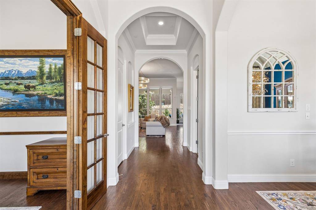 Gorgeous home!! LUXURY upgrades abound in this 2015, hard to find SINGLE-STORY, 3-CAR GARAGE Colleyville house! Nestled on a peaceful cul-de-sac in this lovely gated community, this well maintained and beautiful 3-BEDROOM, PLUS OFFICE house has rich finishes throughout: hardwood floors, 8 foot solid-core interior doors, dramatic 10-12 foot ceilings, designer light fixtures, GE monogram 6-burner gas cooktop, built-in GE refrigerator, double ovens, solid alder cabinetry, tankless water heater and is literally topped off with a brand new roof and gutters! Relax in the serene and private easy-care backyard with covered patio, extensive brick courtyard and pergola with just enough grass. Located near the community's walking paths and pond (yes it is stocked!) you will feel a world away from the very convenient shopping and restaurants nearby! This house is a GEM!!!