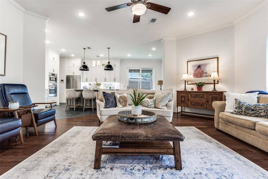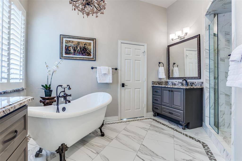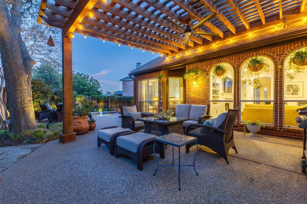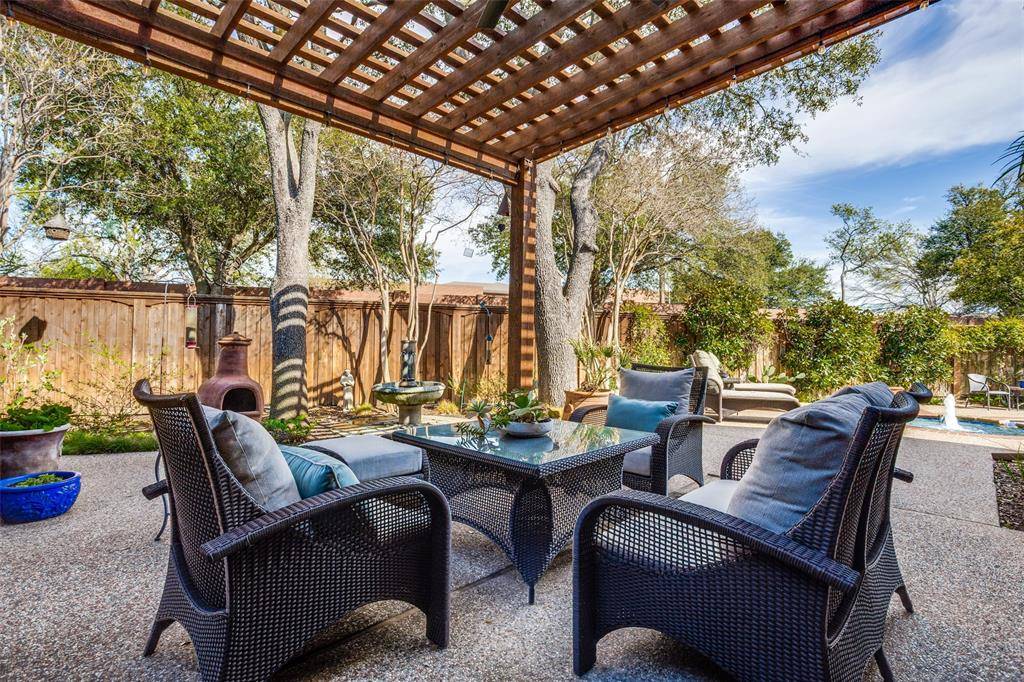 Tucked away on a tree-lined cul-de-sac lot in the quiet and welcoming Country Brook neighborhood, this gorgeous home provides serenity and convenience in one of North Dallas' most desired areas. Inside, an open floorplan with vaulted ceilings, decorative lighting, flat-screen wiring, bay windows and Plantation shutters creates an inviting atmosphere filled with natural light. The fully renovated designer kitchen is both functional and stylish, featuring an island, quartz countertops, new full height custom cabinets, a beverage fridge, and new stainless steel Bosch appliances including a gas range in 2022. The spacious primary suite is a true retreat with a sitting area and engineered wood floors that add both style and durability. The beautifully updated en-suite bath has quartz counters, separate vanities, a standalone tub and a shower with body sprays. All bedrooms offer walk-in closets, and the game room along with one secondary bedroom featuring its own en-suite bath boasts wood flooring for added warmth and character. Step outside to your private backyard oasis where you can spend summer days enjoying the sparkling pool and spa. With two separate yard spaces, new St. Augustine sod laid in 2025 and a covered pergola with convenient electrical plugs added in 2024, it's the ideal setting for both fun and flexibility. When it comes to location, it truly doesn't get better. Just one block away, enjoy a peaceful neighborhood pond perfect for morning walks, evening strolls, or relaxed weekend picnics. Easy access to the Dallas North Tollway provides a straight shot south to Downtown Dallas or north to Frisco, plus with quick connectivity to the President George Bush Turnpike for access to DFW Airport, commuting is effortless.